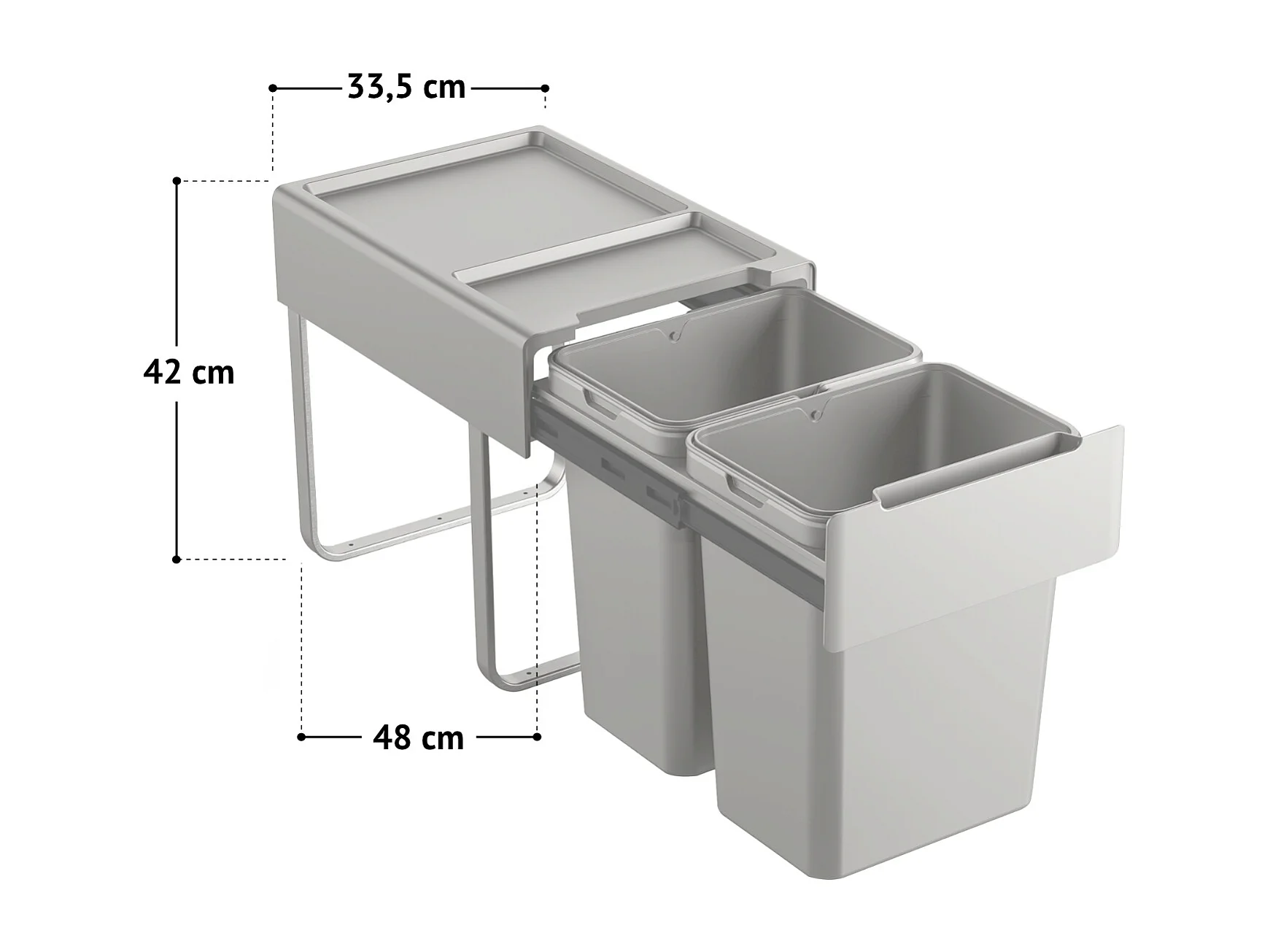 SVITA EM2x20 Poubelle encastrable 40L (2x20L) 2 compartiments avec couvercle système de tri des déchets 2 voies