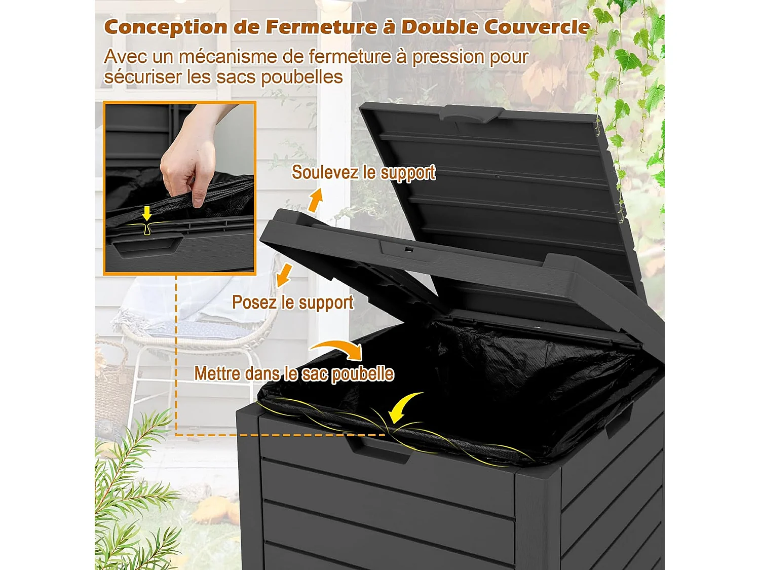 Outsunny Abri pour 2 poubelles 240L, cache poubelle extérieur, portes avec poignées, couvercles relevables à 180°, acier galvanisé, 146 x 81 x 122 cm, gris foncé