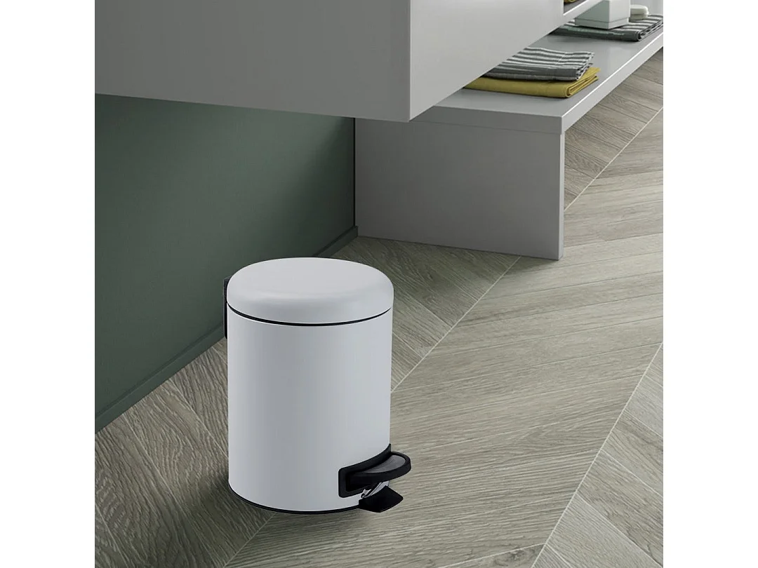 Poubelle Ronde De 3 Litres À Pédale Pour Toilettes, Blanche À Fermeture Douce, Acier Inoxydable | Papaya