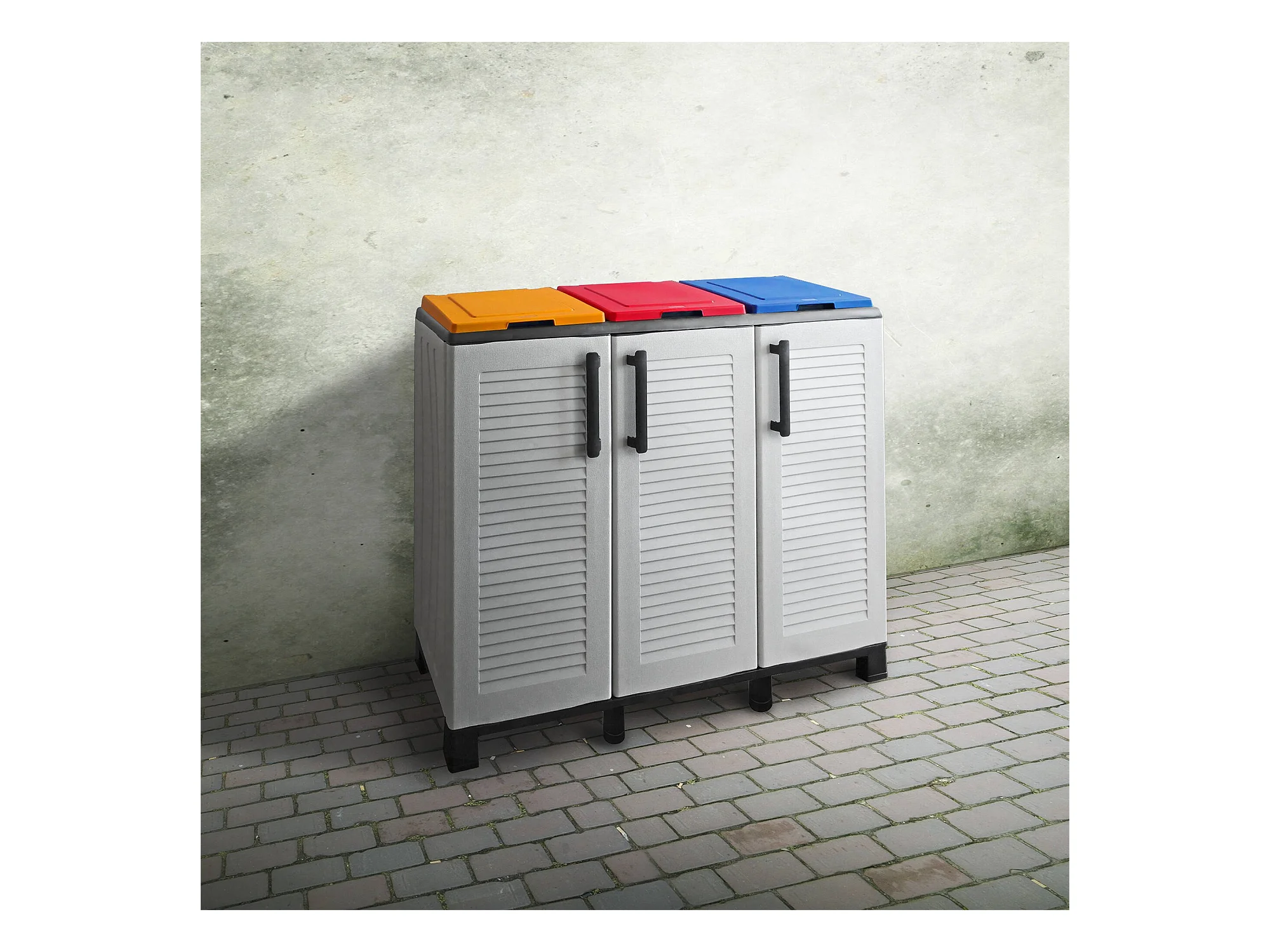 Poubelle Virton, poubelle pour déchets, poubelle de recyclage, 100% Made in Italy, 102x37h90 cm, gris clair et multicolore