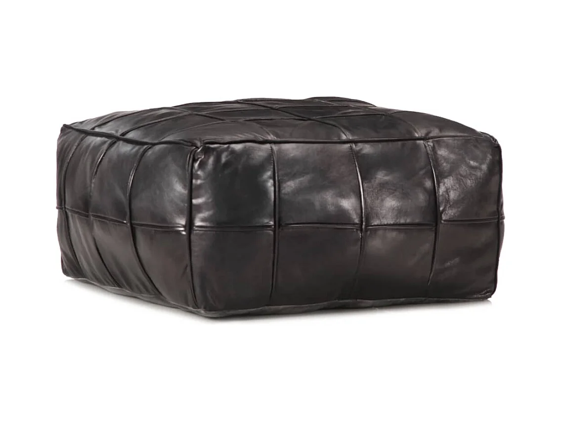 Pouf 60 x 60x30 Noir Cuir véritable de chèvre