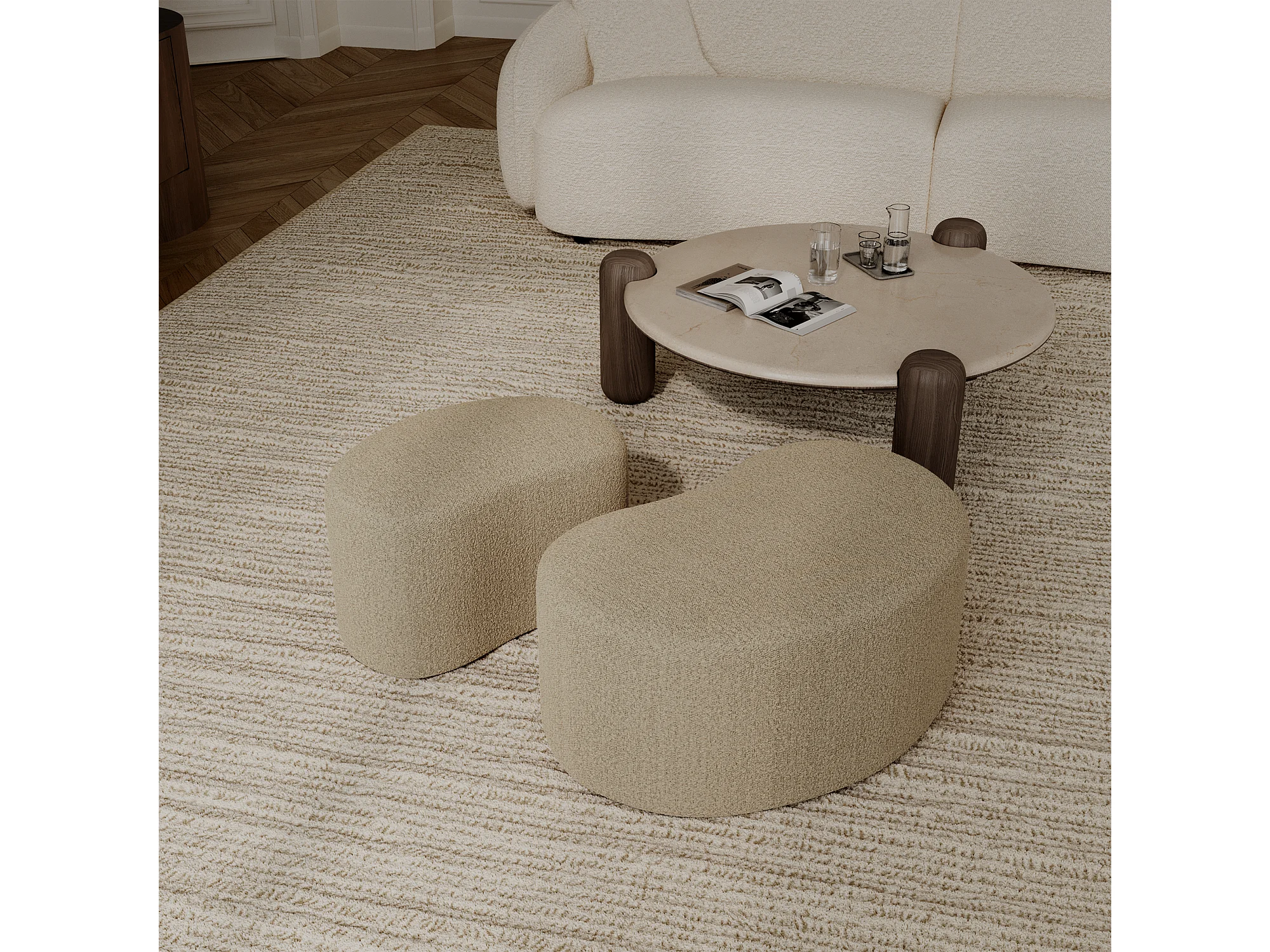 Pouf 80cm tissu bouclette taupe DUNE