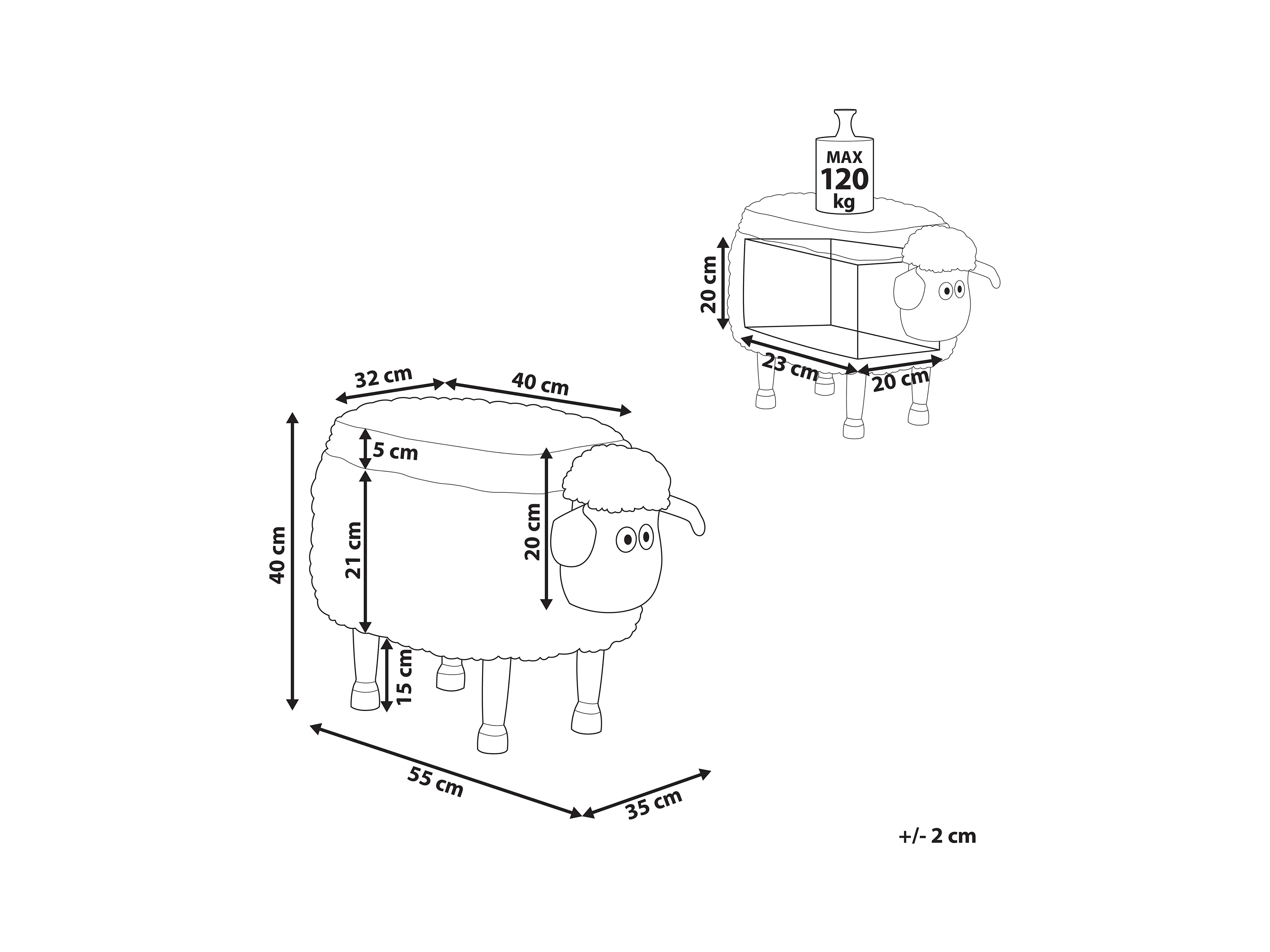 Tabouret de rangement animal SHEEP Tissu Blanc