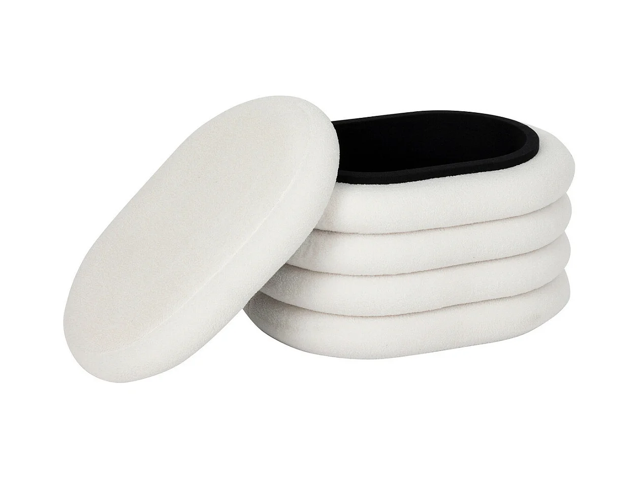 Pouf avec coffre en tissu à bouclettes Blanc D 35 x H 37 cm