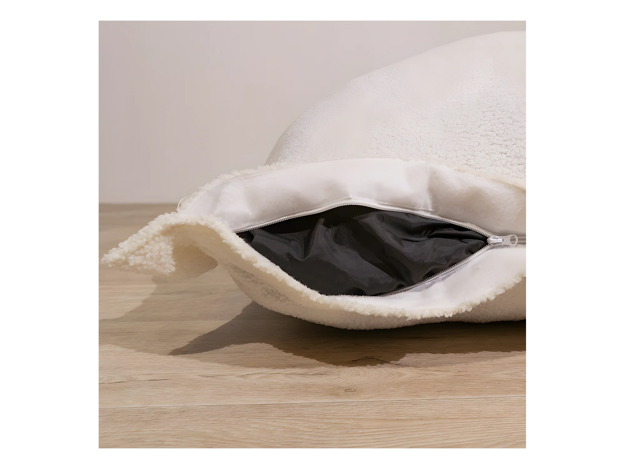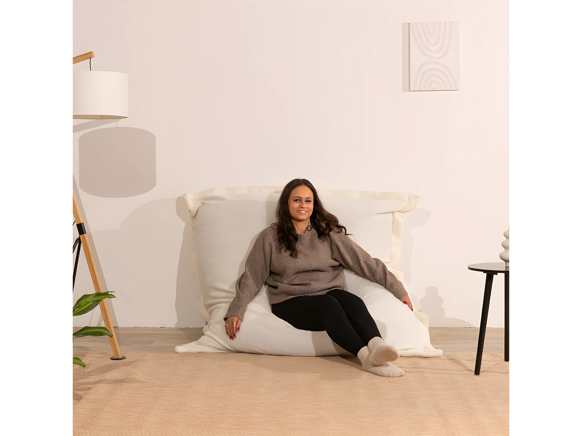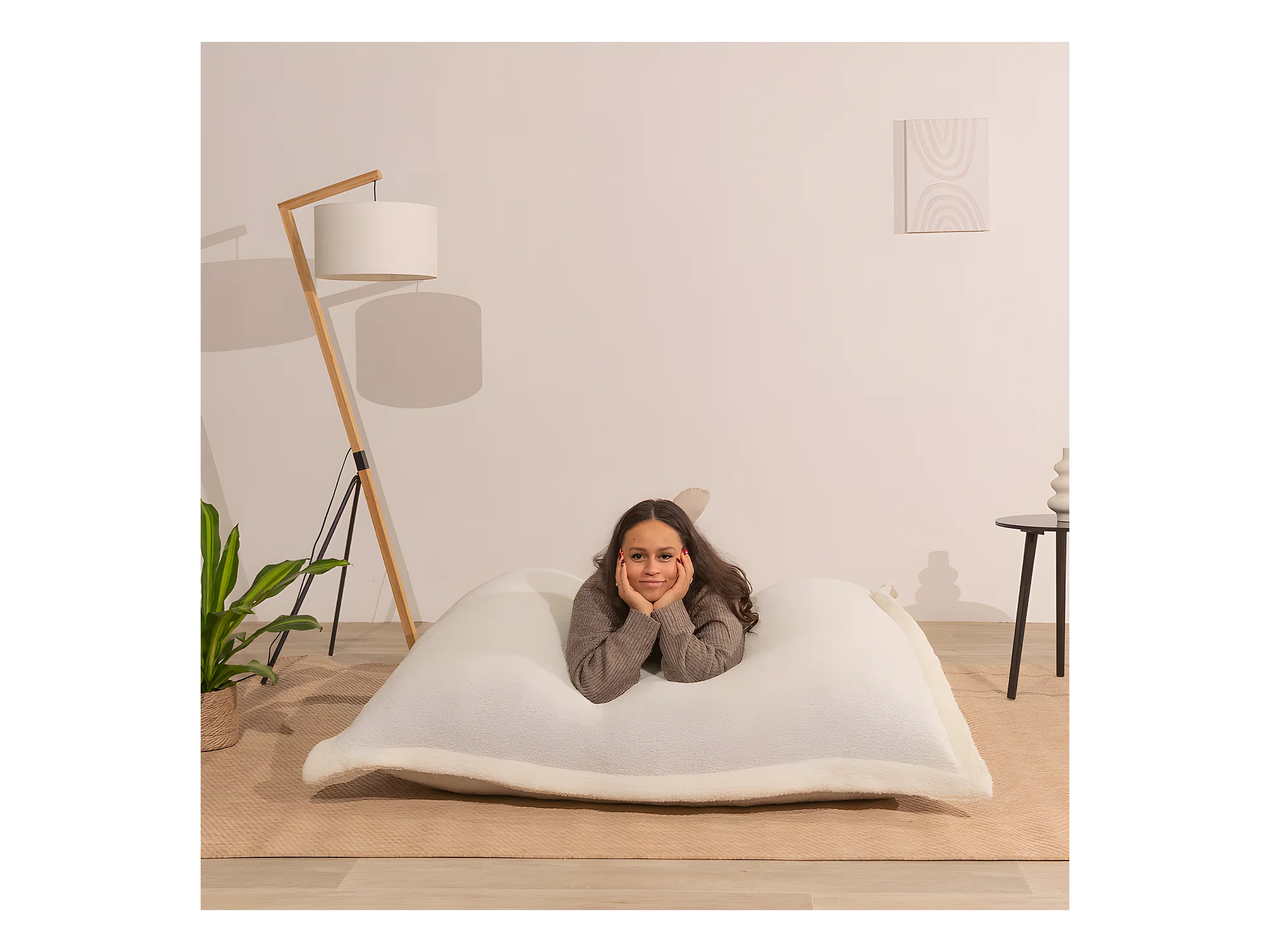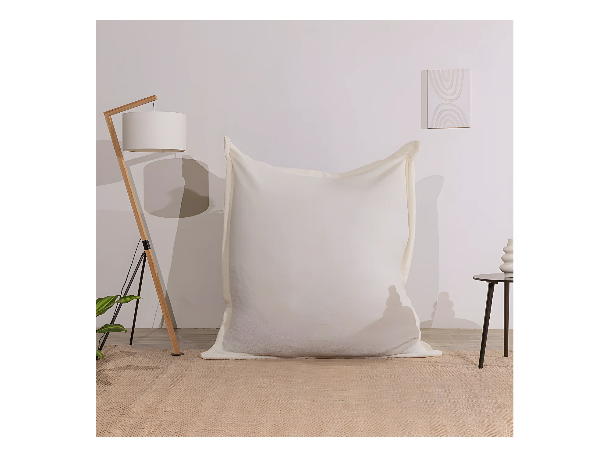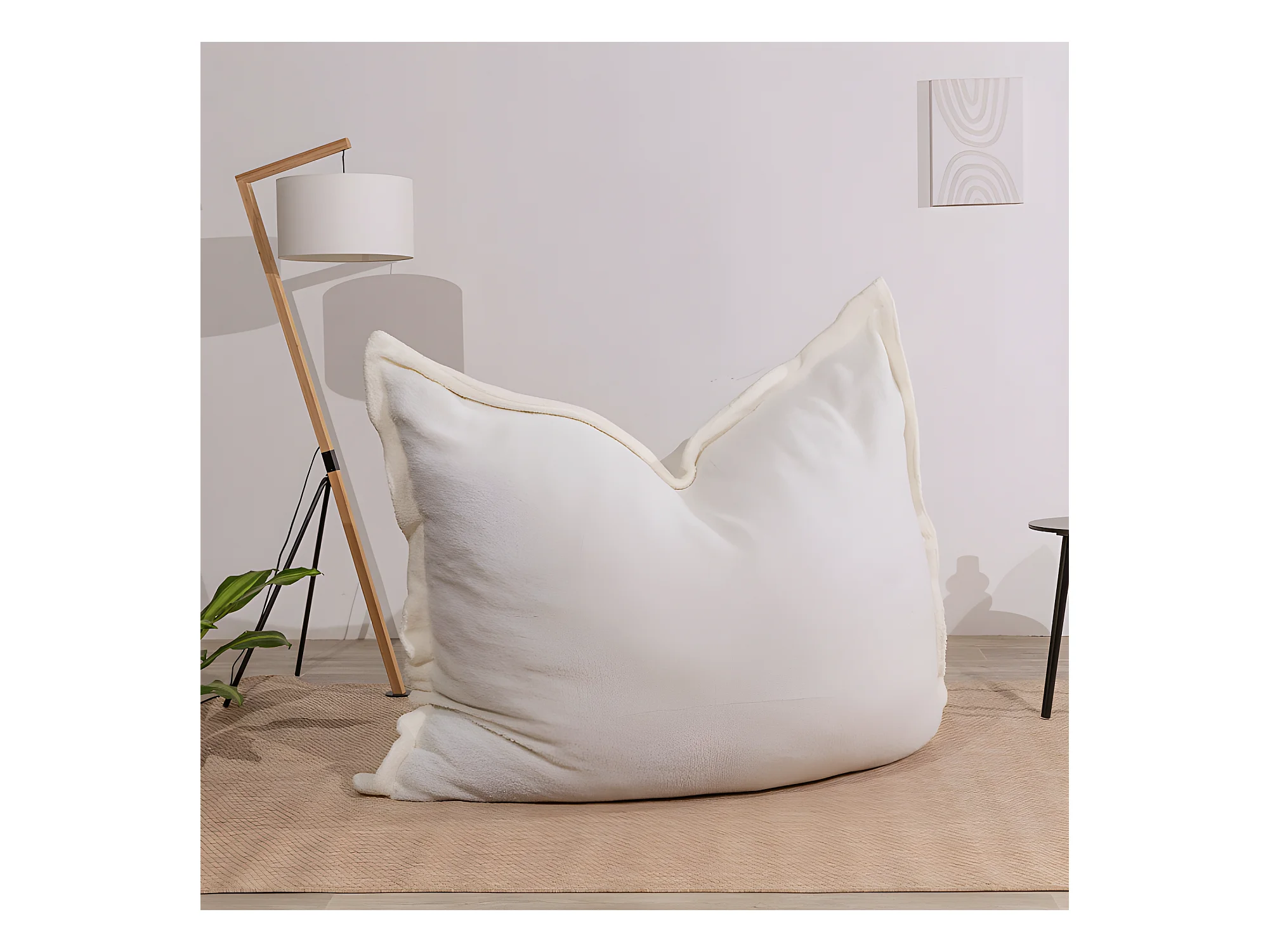 Pouf bouclette déhoussable blanc 180 x 140 cm