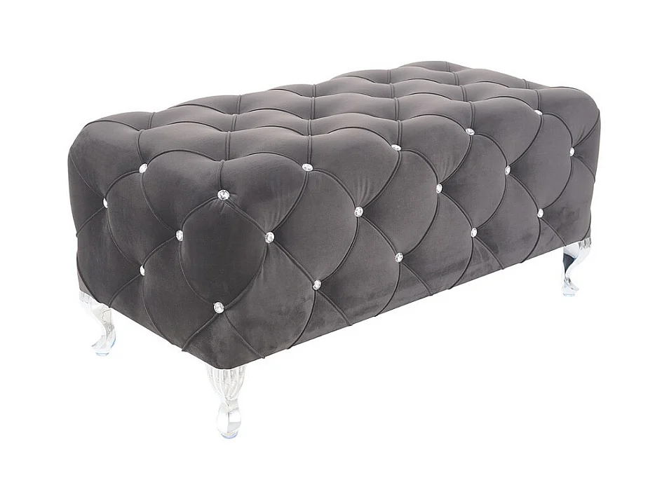 Pouf capitonné en velours gris avec pieds design en métal Lynda