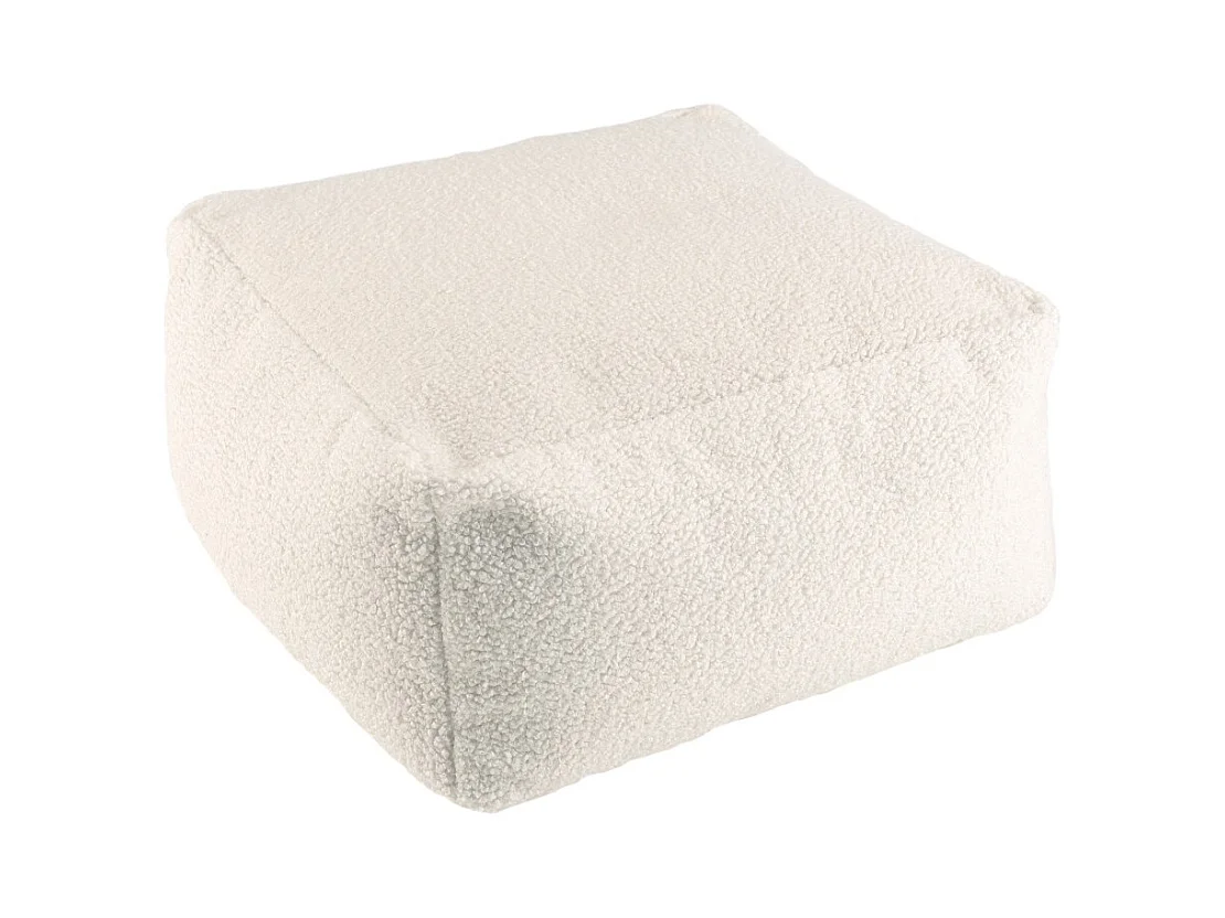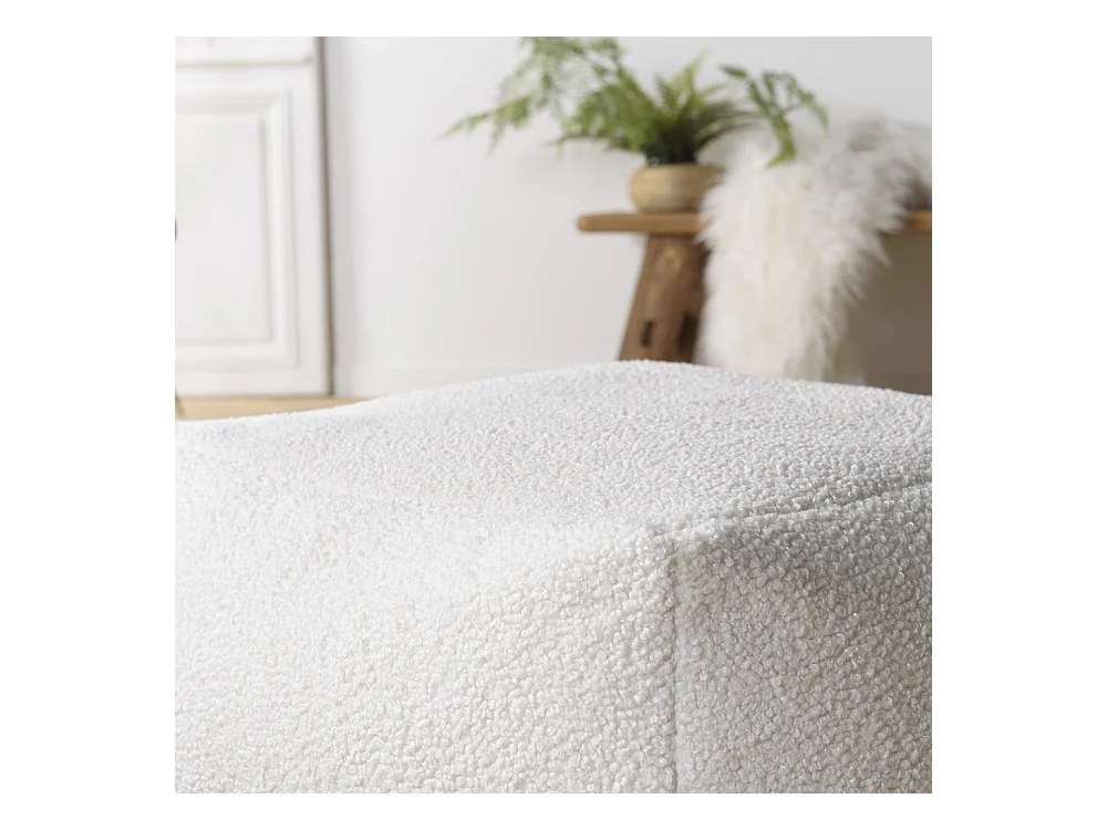 AGATHE - Pouf carré 53x53cm tissu bouclette blanc