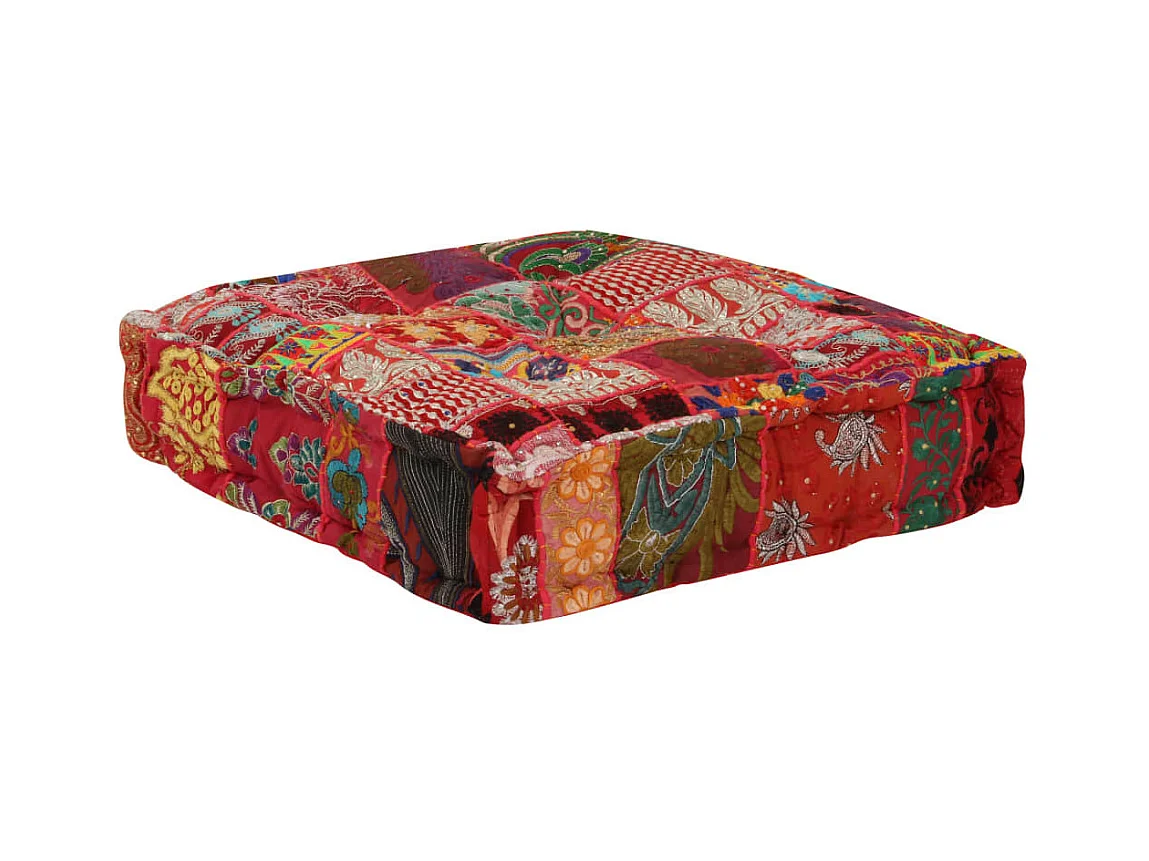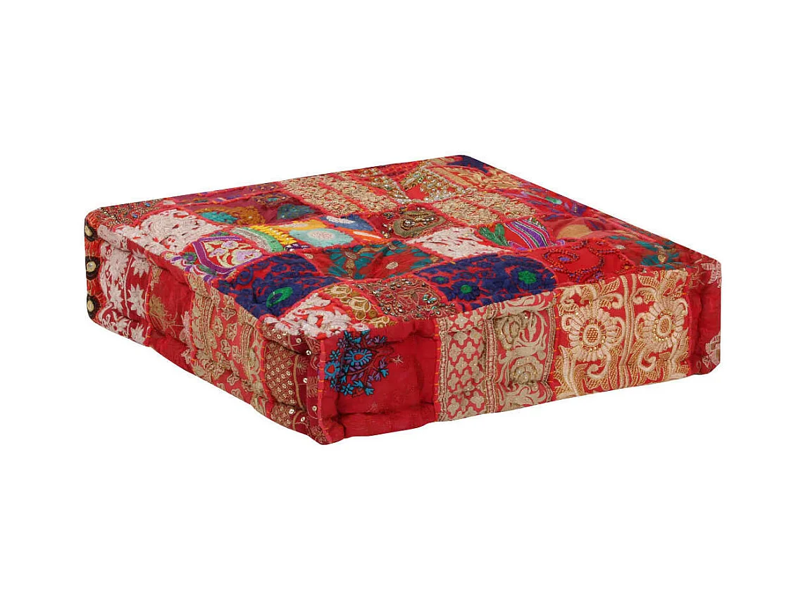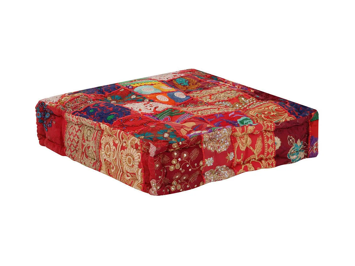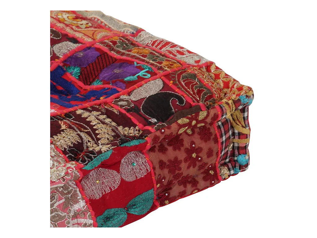 Pouf carré en coton fait à la main 50 x 50x12 Rouge