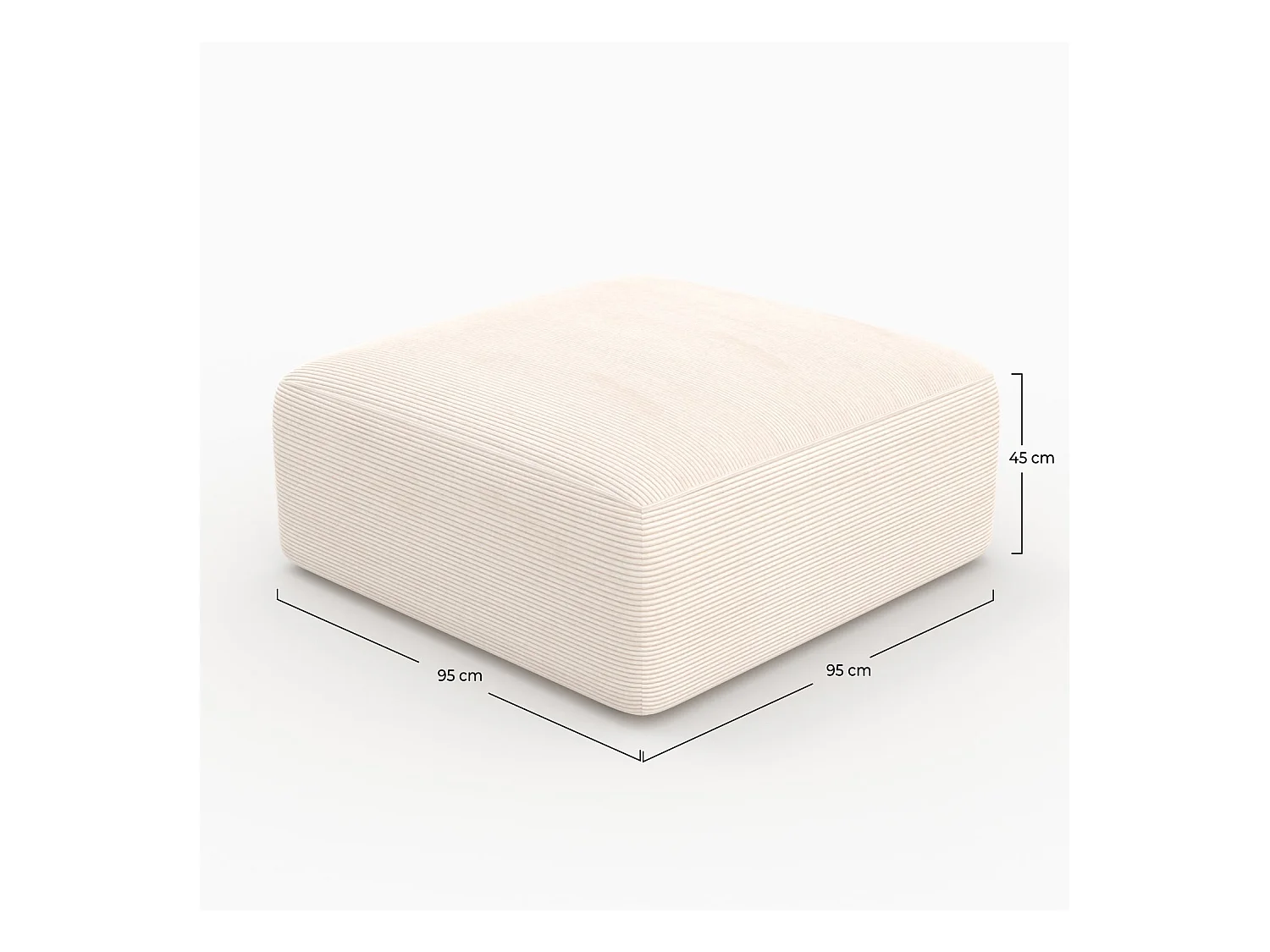 Pouf carré pour canapé modulable en velours blanc cassé - Mina