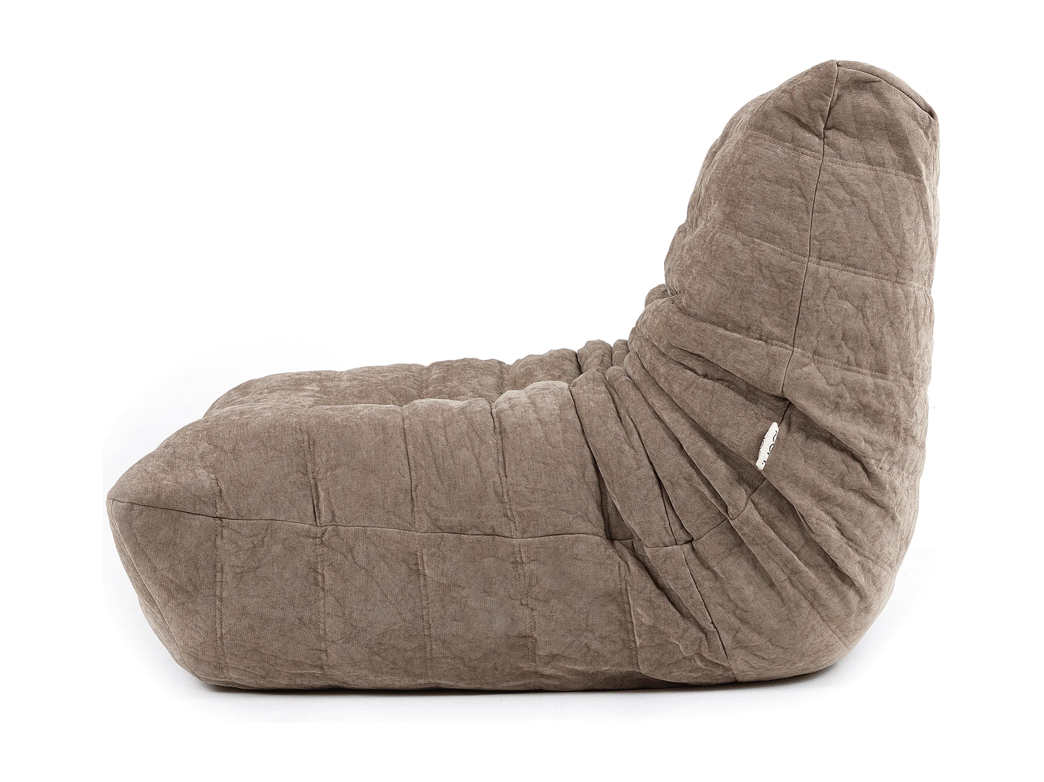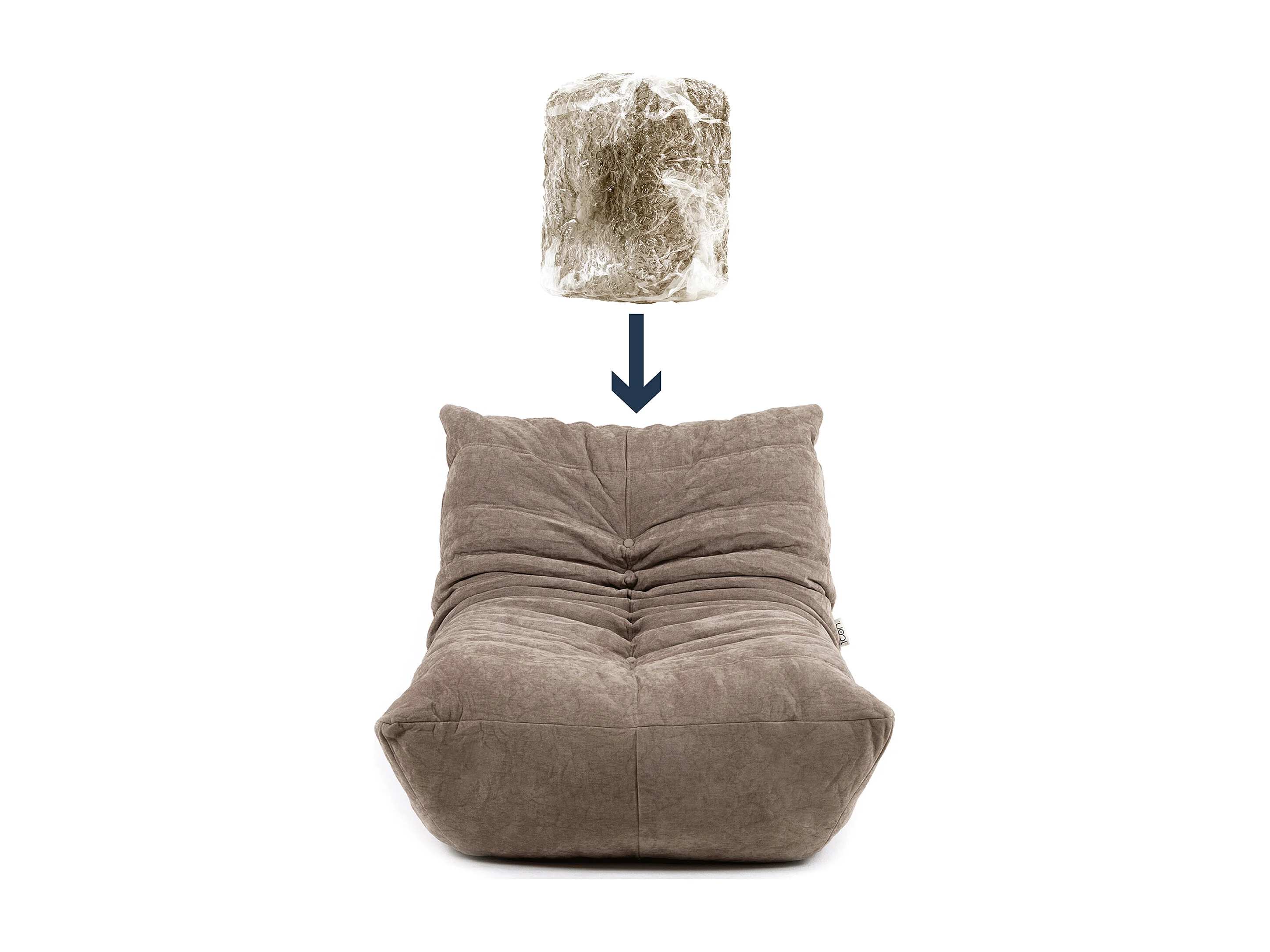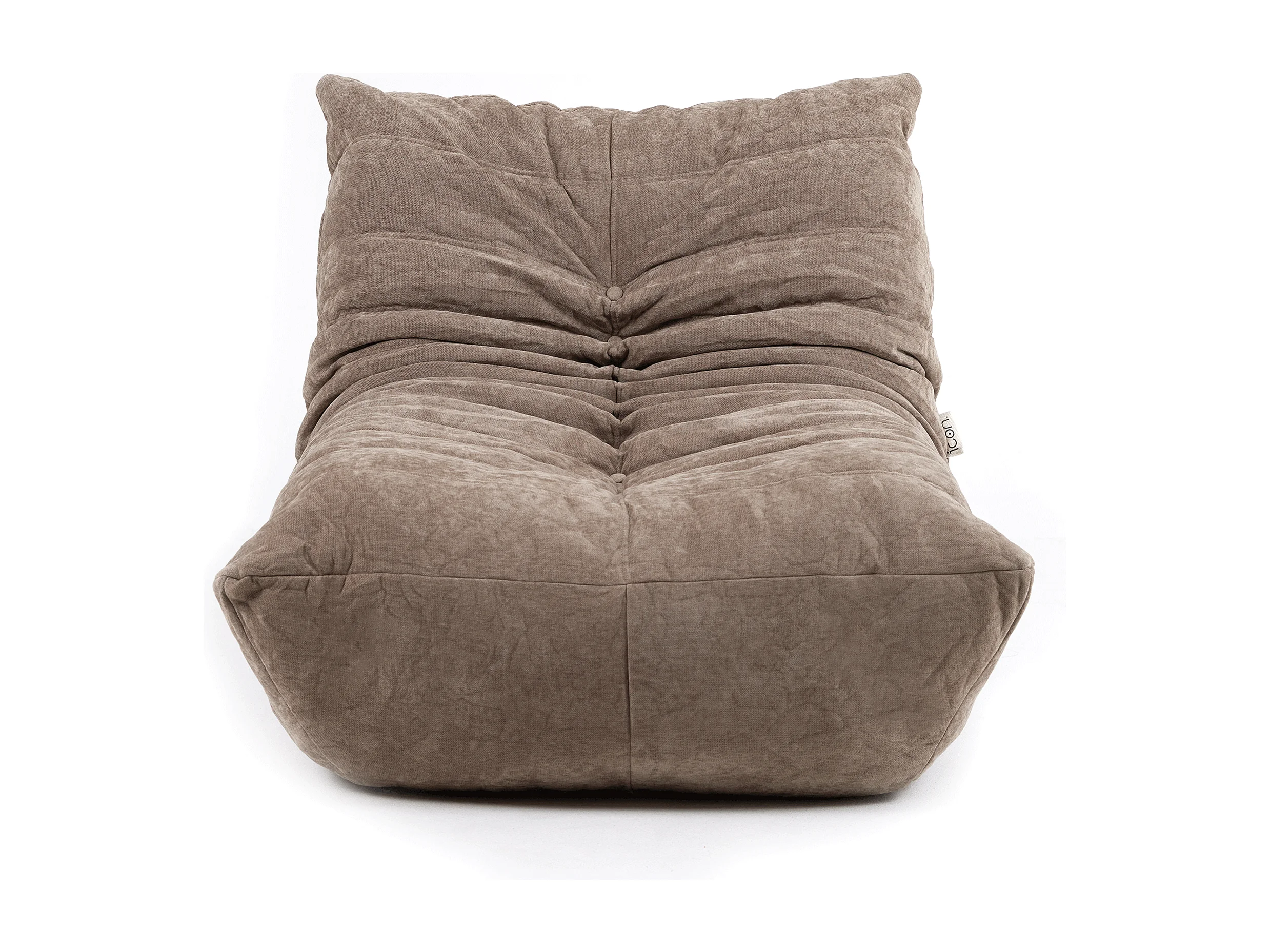 Pouf chauffeuse en tissu chenille garni de mousse extensible, beige - ENZO