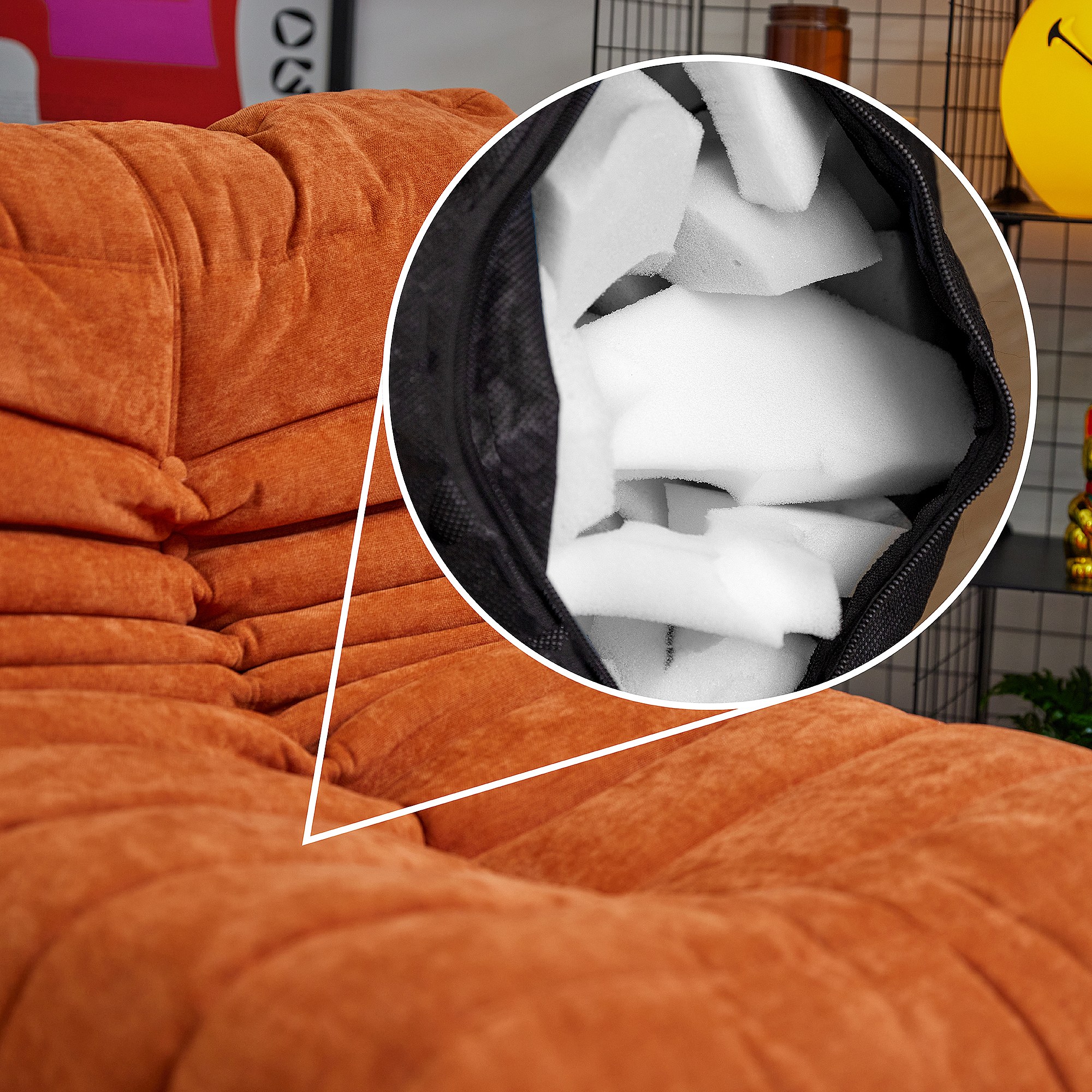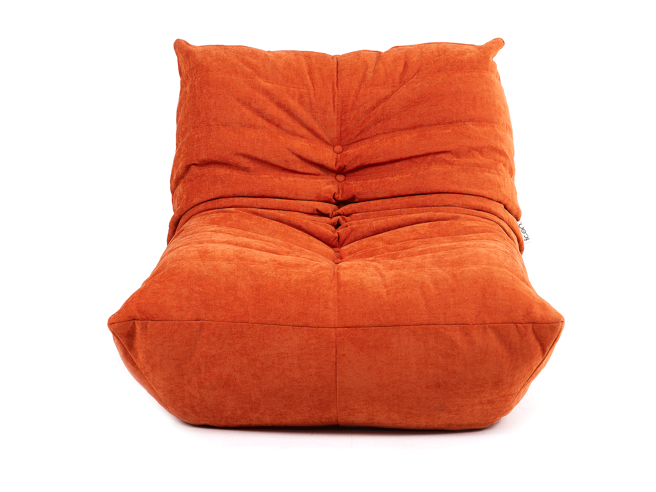 Pouf chauffeuse en tissu chenille garni de mousse extensible, orange - ENZO