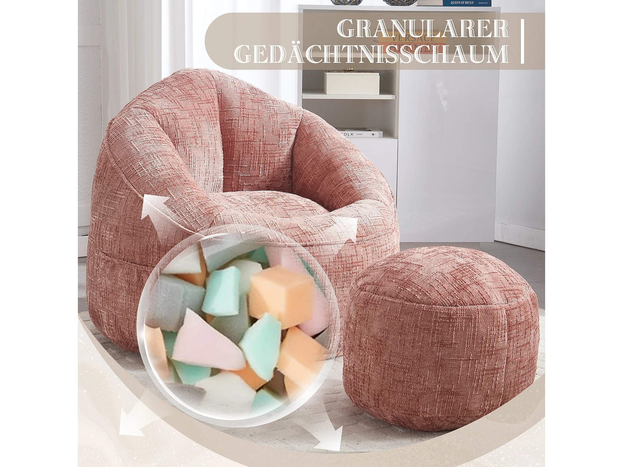 Pouf poire velours chenille rose - ultra confortable – repose‑pieds inclus – poches latérales – parfait pour salon et chambre