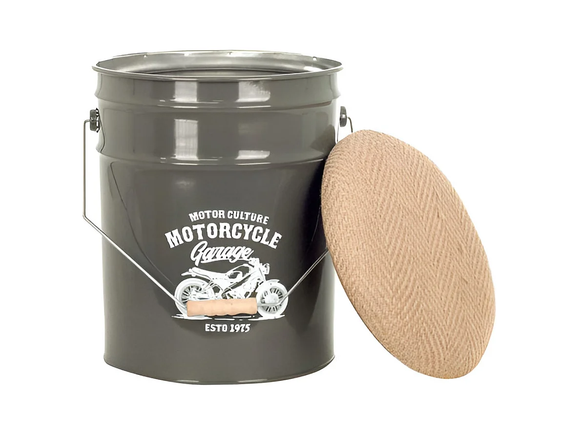 Pouf seau à pellets en métal Motorcycle
