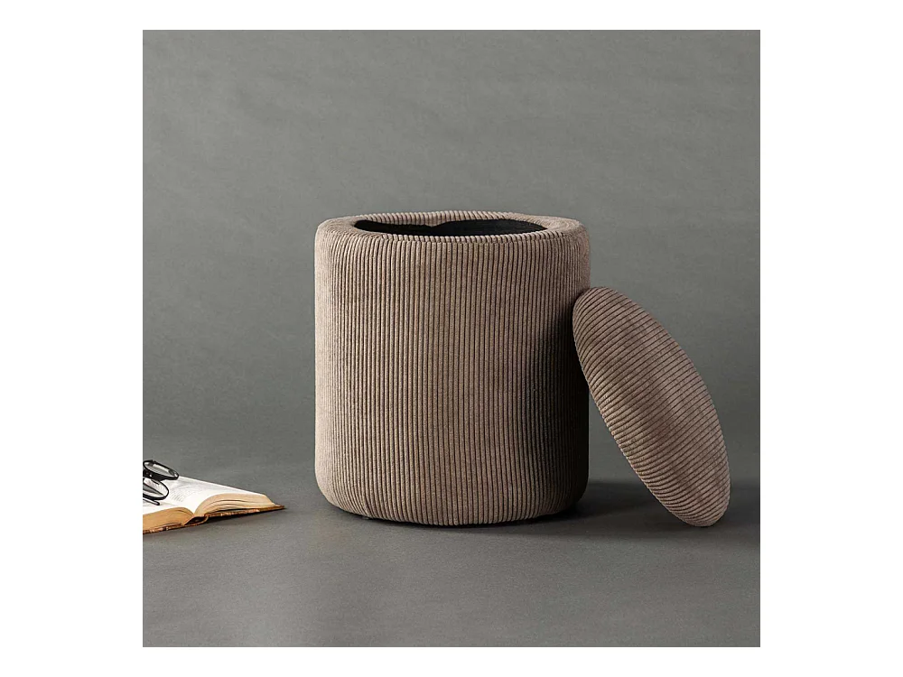 Pouf Coffre en Velours Côtelé "Limpen" 40cm Marron
