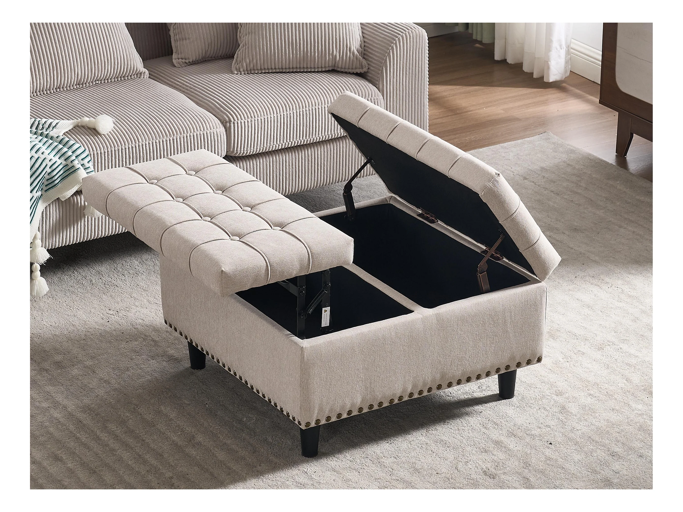 Pouf coffre en tissu coton‑lin beige - Repose-pieds – mousse haute résilience