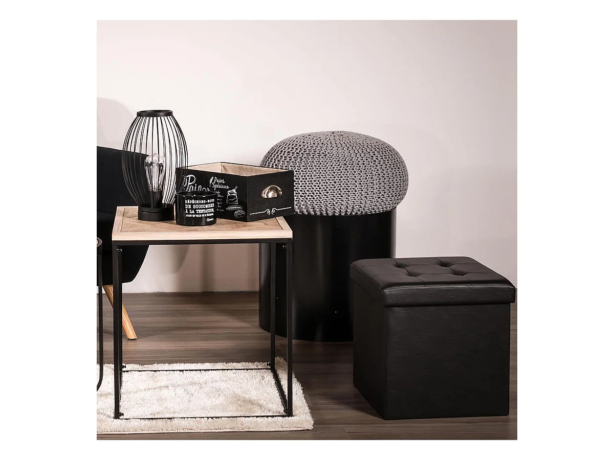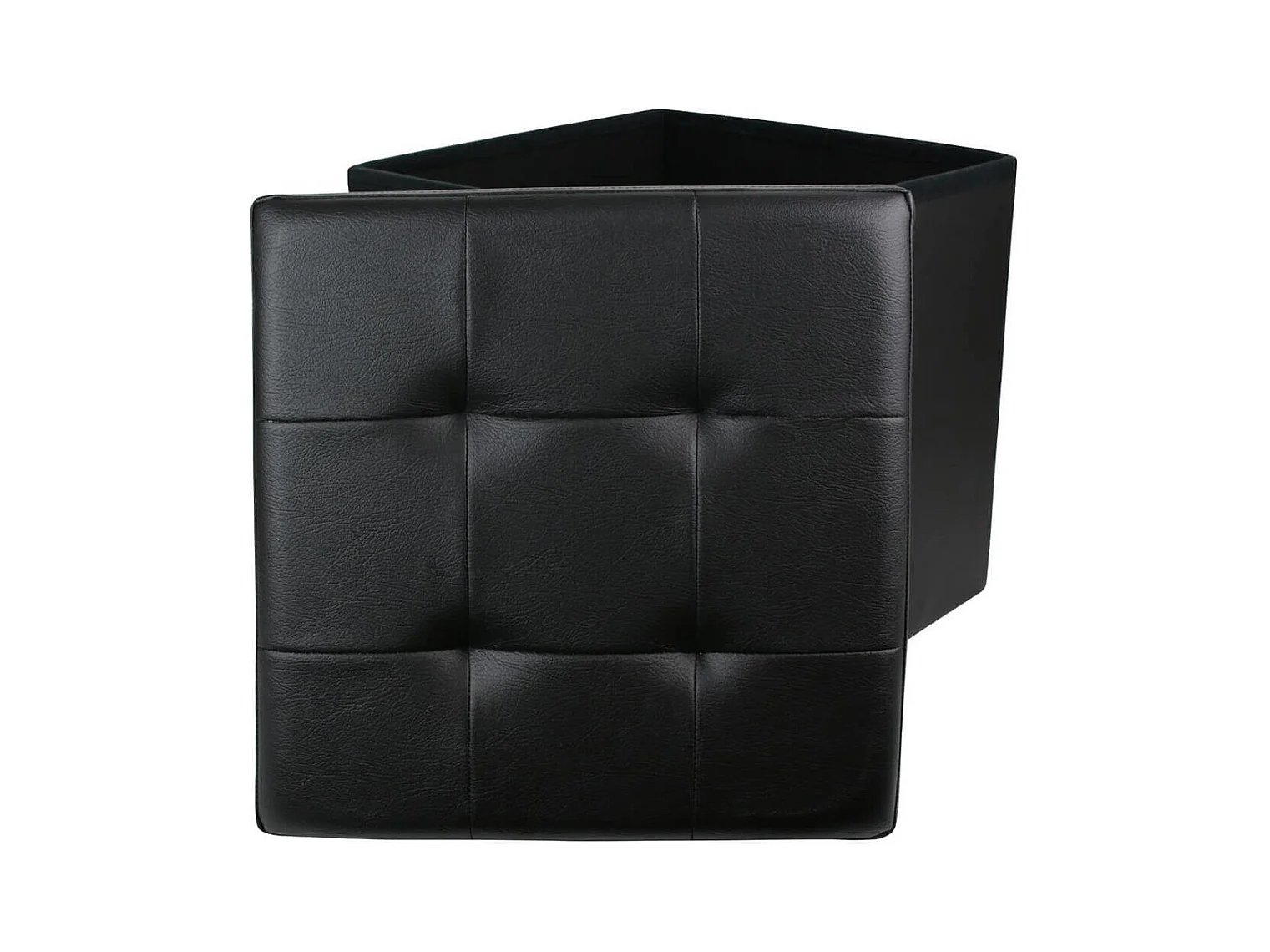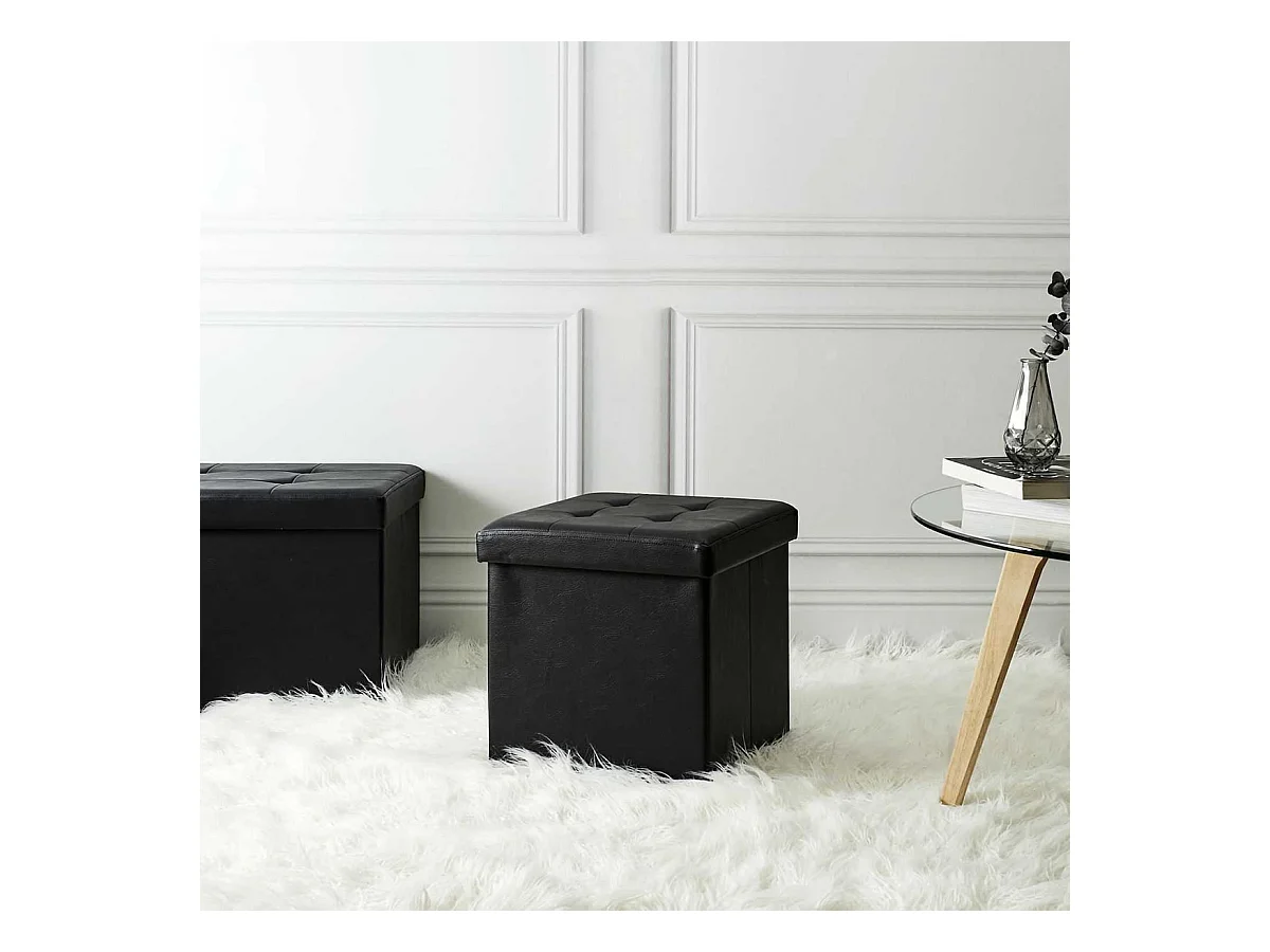 Pouf Coffre Pliable Carré Simili Cuir Noir Capitonné - RONNY