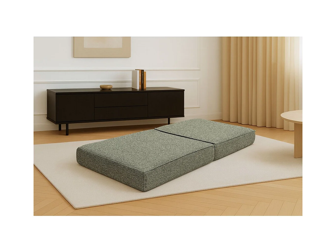 Pouf modulable et convertible - Tissu tweed - Vert