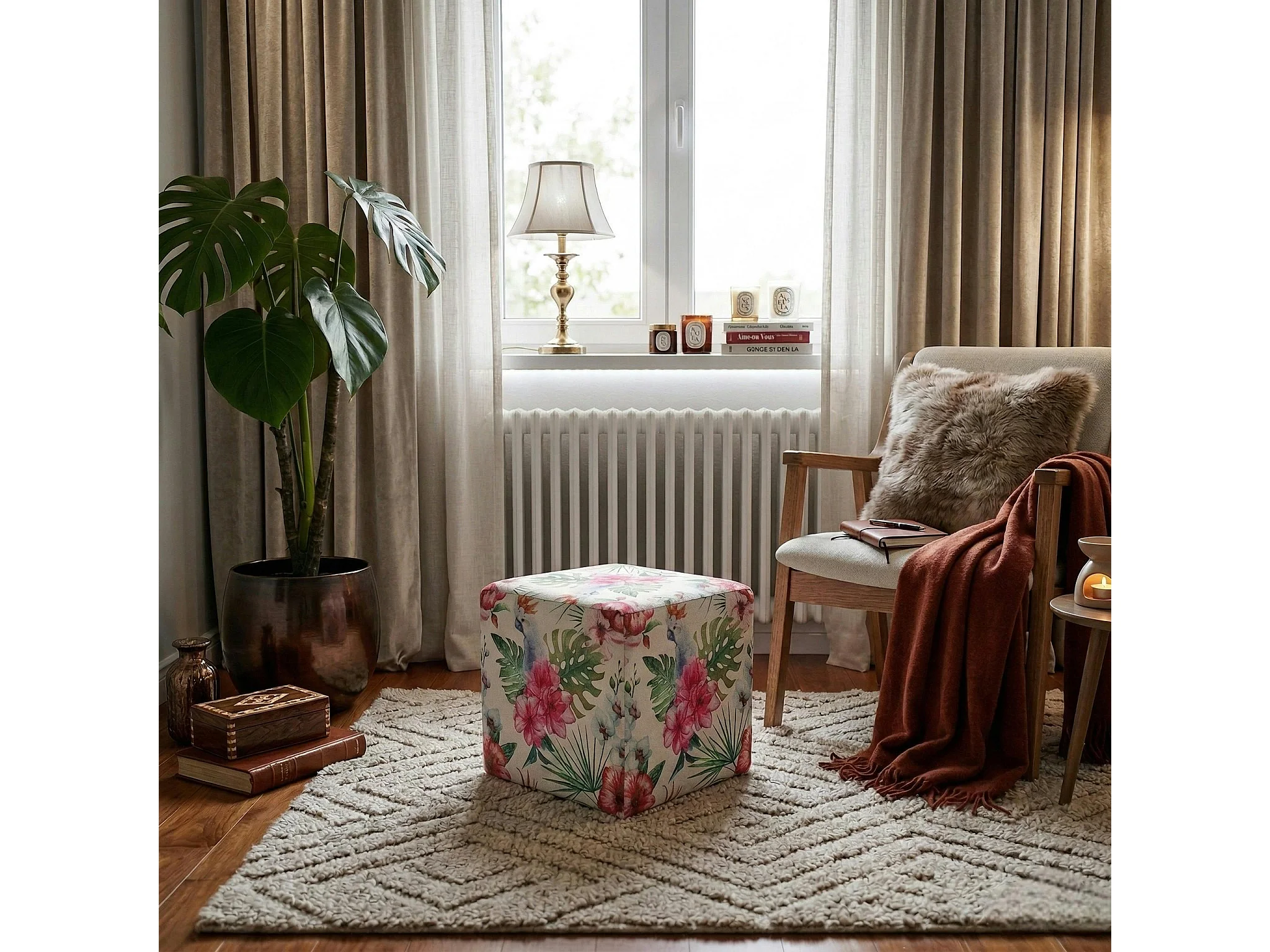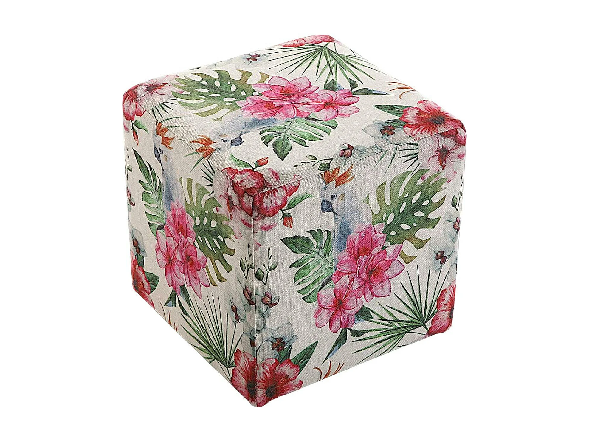 Pouf cube tropical motif perroquets, feuilles et fleurs 35x35x35cm BORNEO