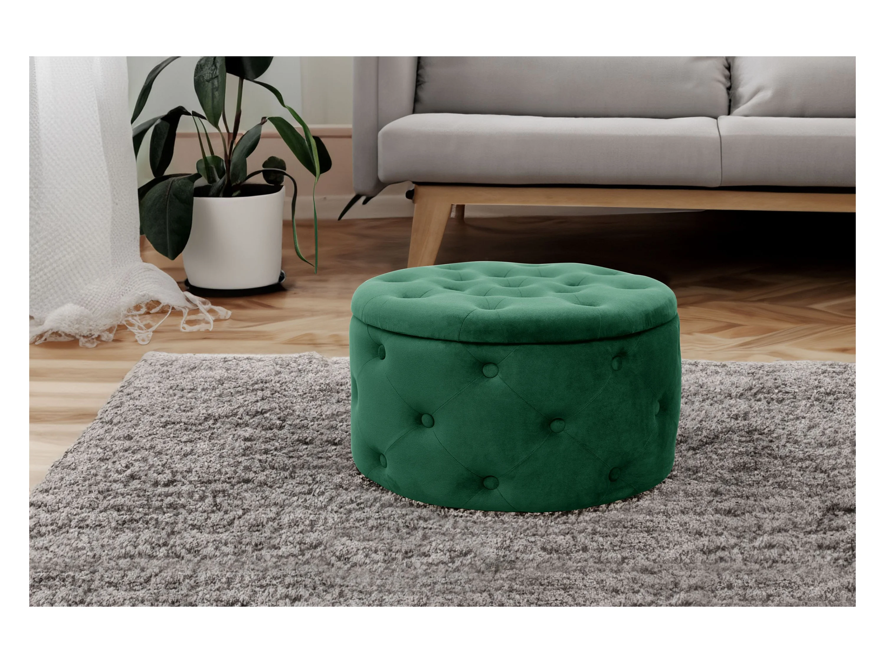 Pouf de Rangement avec Couvercle matelassé AKORD ALIA velour colour Vert Bouteille hauteur 30 cm