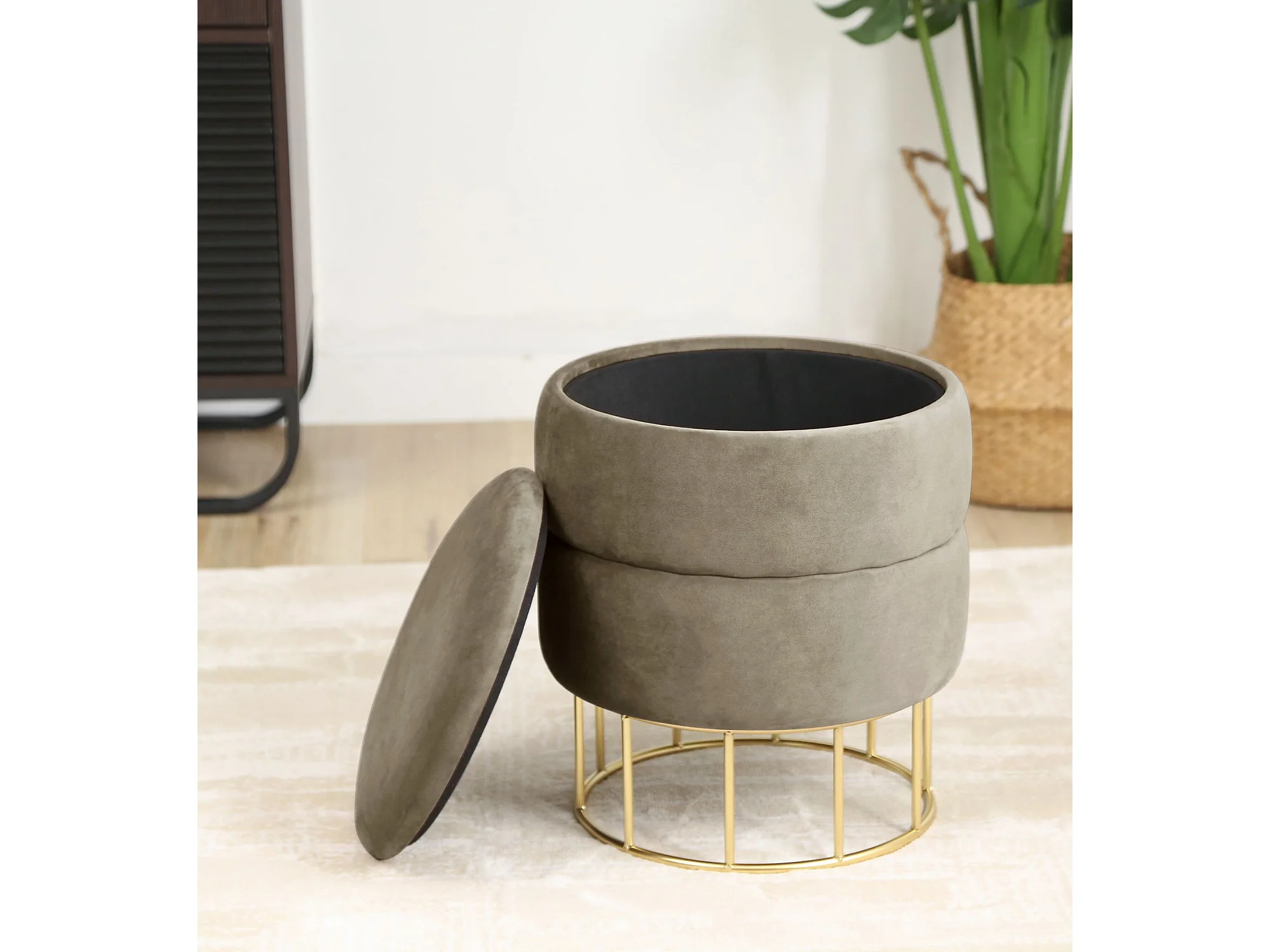 Pouf de Rangement avec Couvercle matelassé AKORD ELZA velour colour Beige hauteur 42 cm