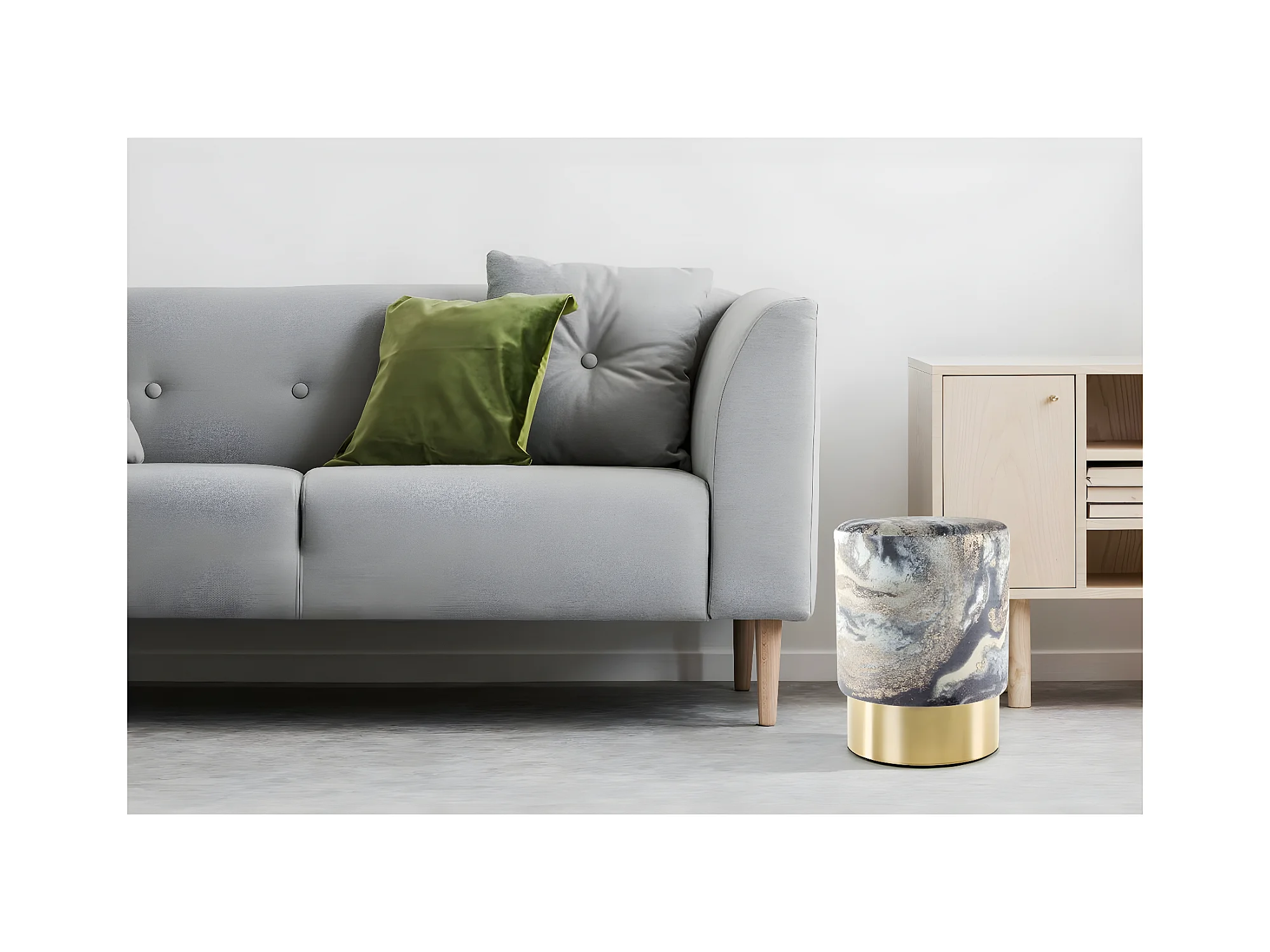 Tabouret bas coffre de rangement en tissu bouclette et métal doré - Gris - ESDALO
