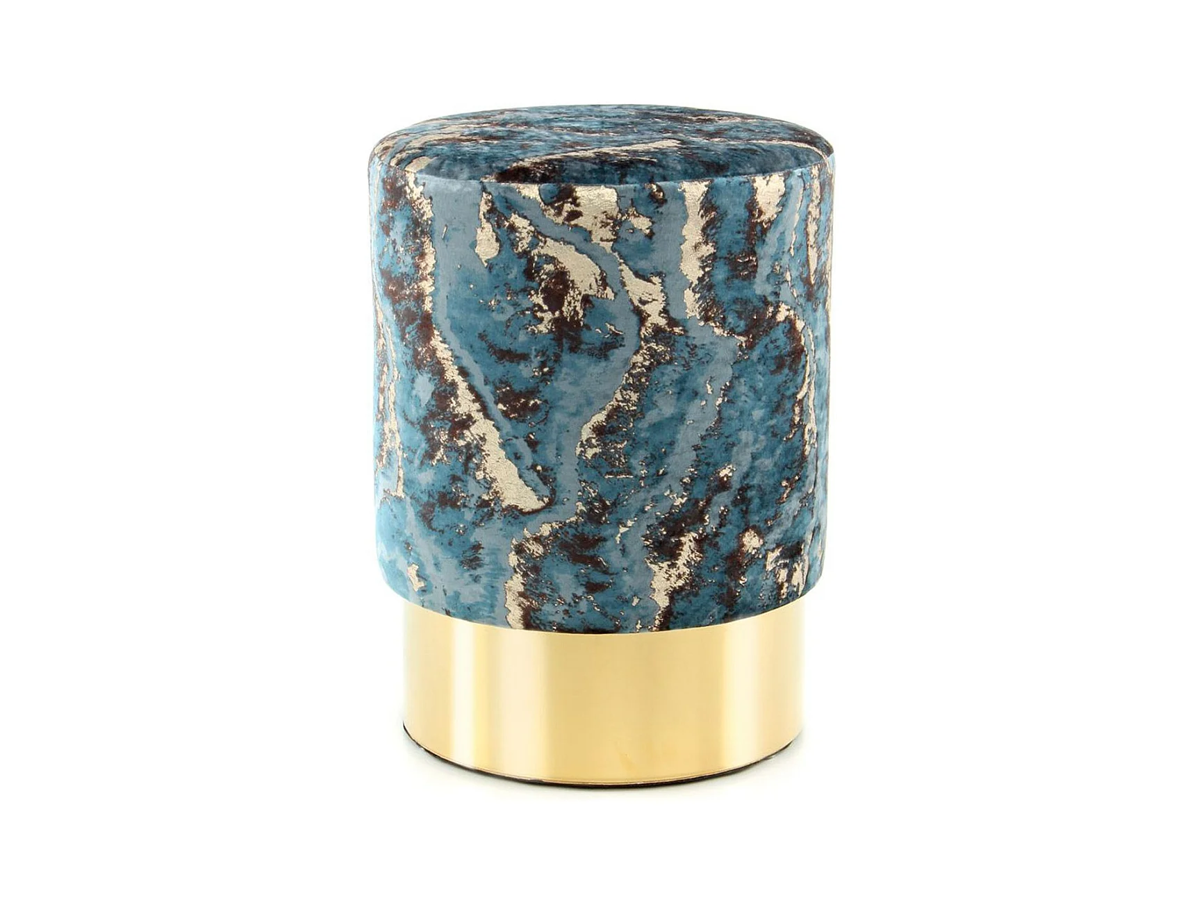 Pouf Design Marbré "Gipsy" 46cm Bleu Foncé