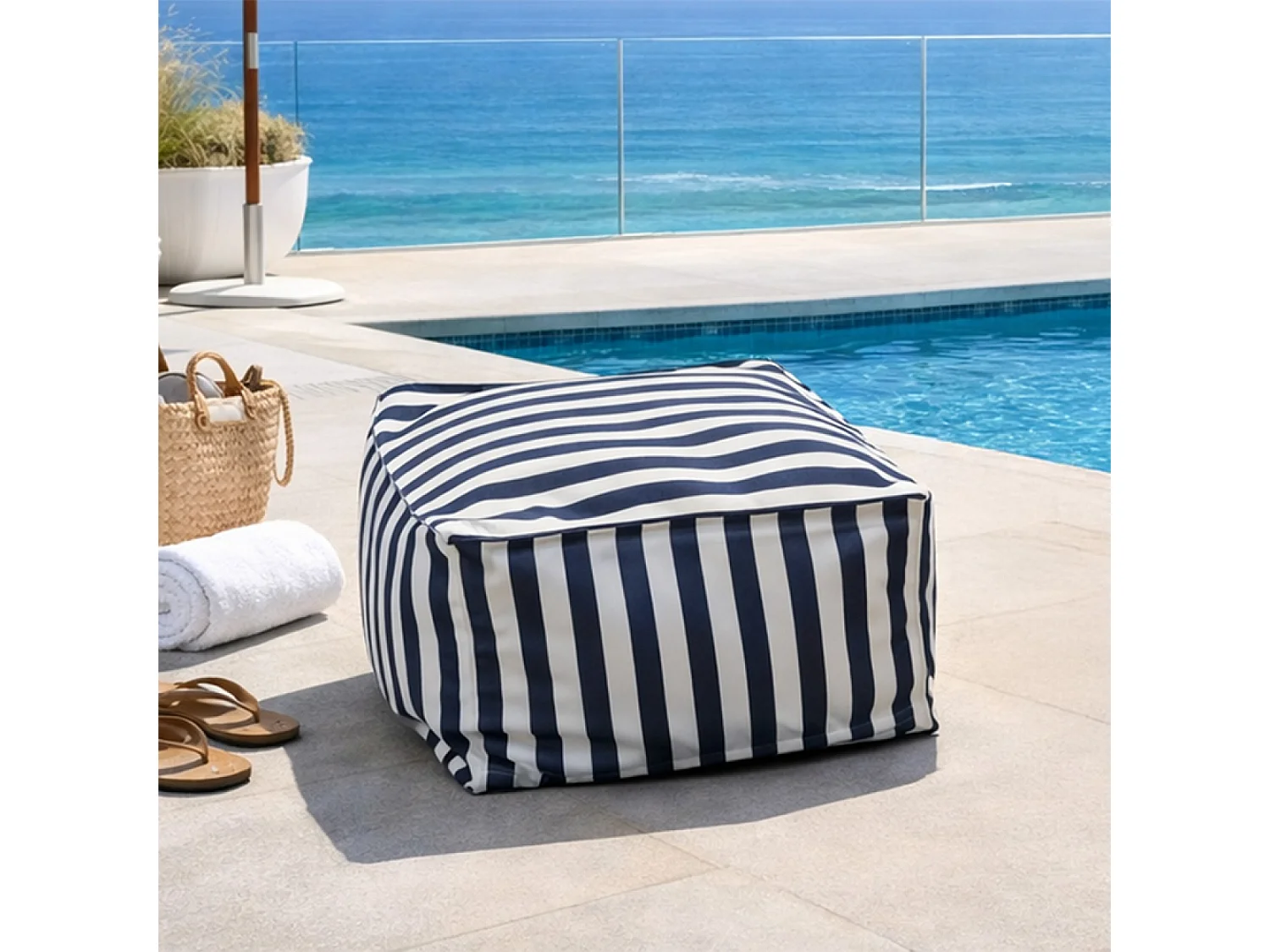 Pouf exterieur rayé bleu déperlant 100x65x65 cm POSITANO