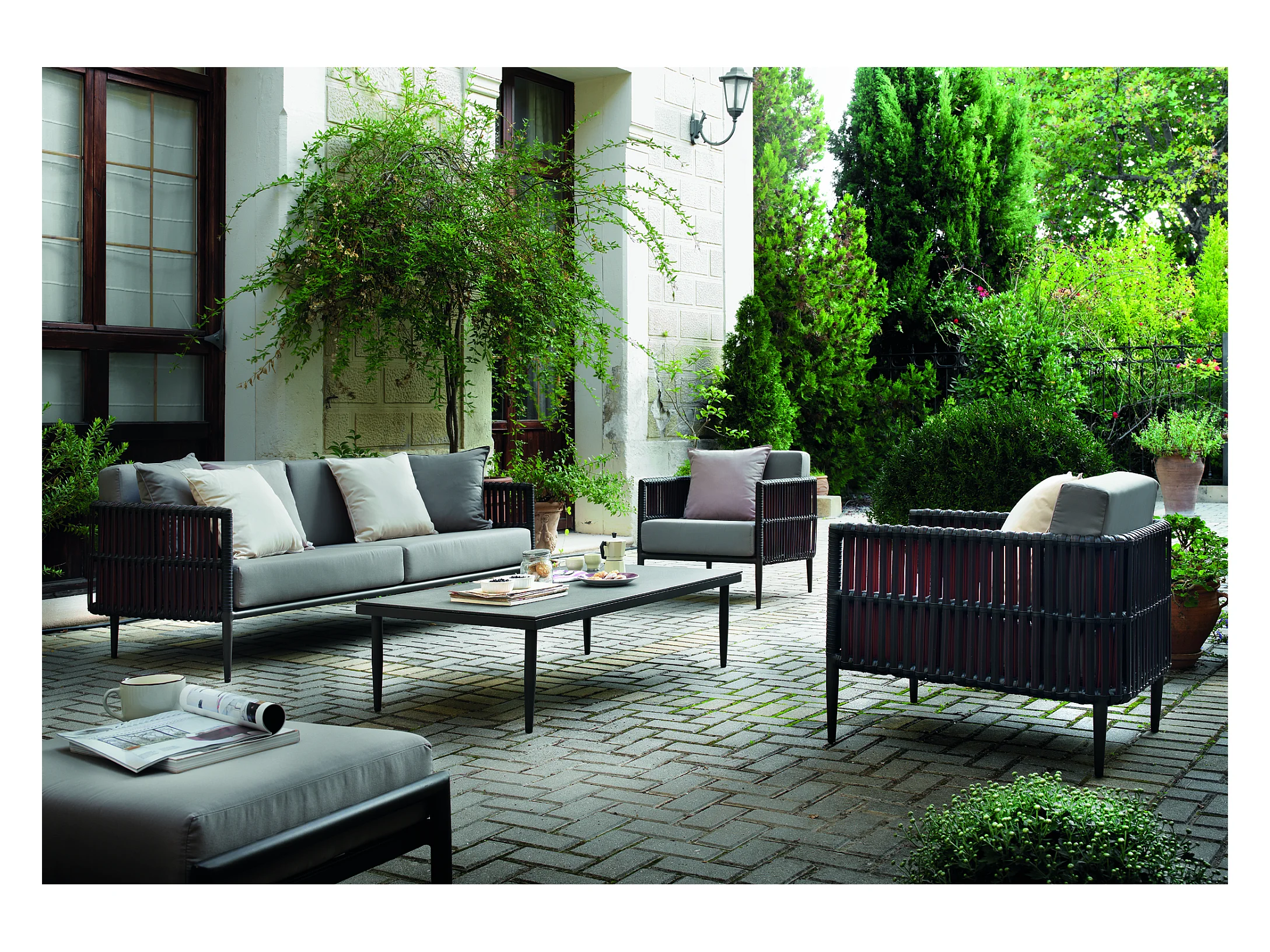Repose-pieds en aluminium marron avec coussin couleur lin