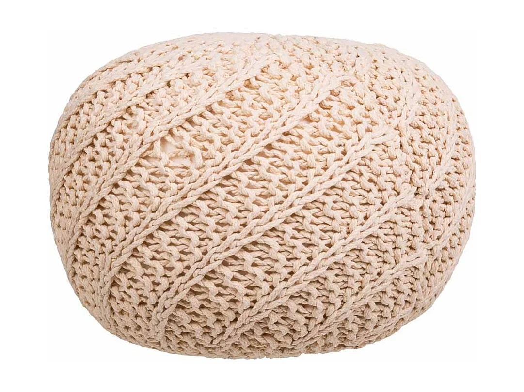 Pouf en coton tressé couleur crème 45x45x30h