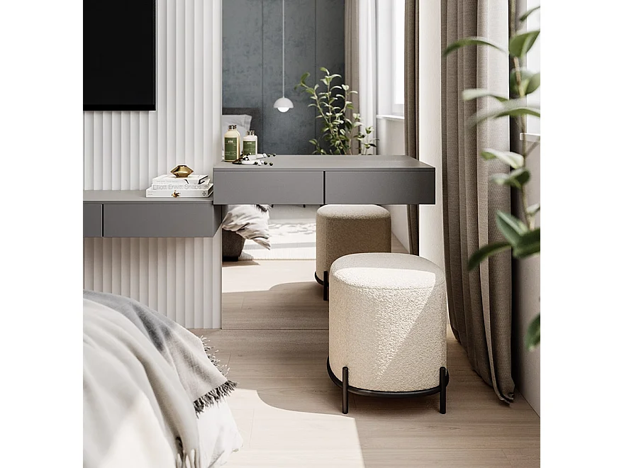 Pouf en Tissu Bouclé "Mark" 47cm Beige