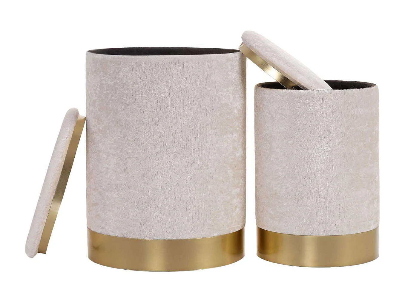 Lot de 2 Poufs Coffres de rangement en Tissu à bouclettes Beige et Blanc Ivoire