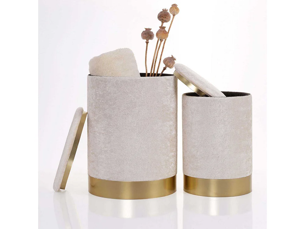 Banc avec coffre en velours Beige et pieds en métal 100 x 40 cm