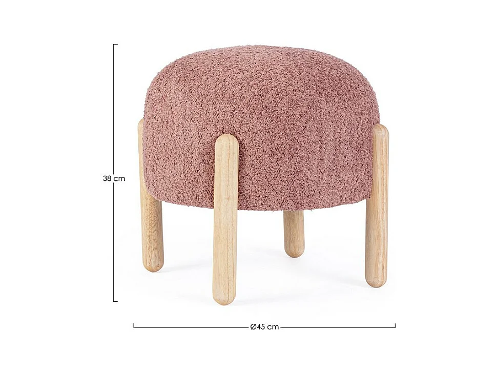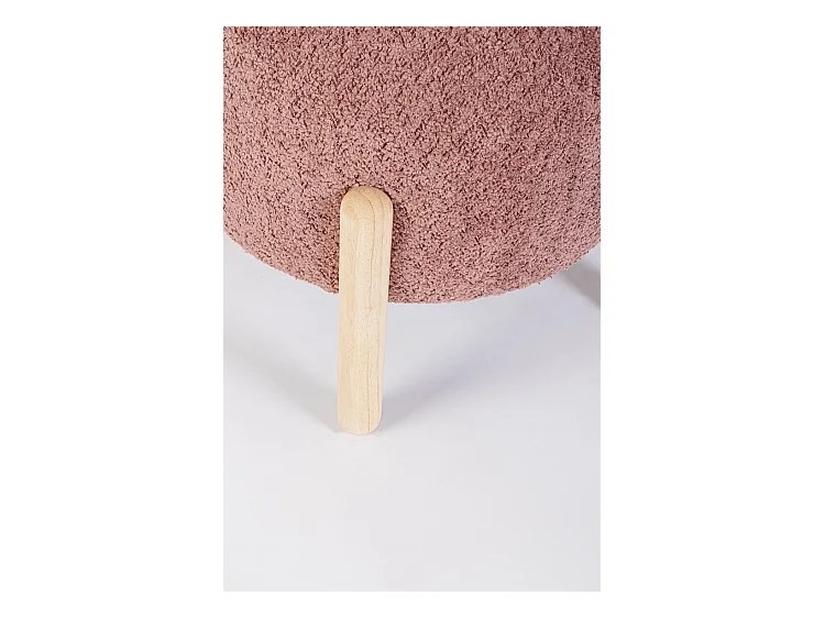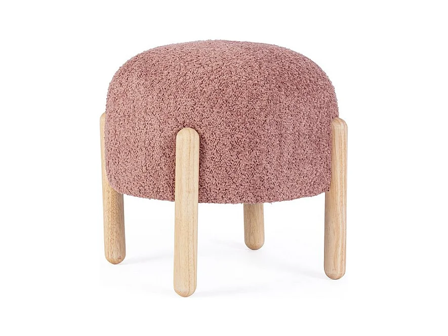 Pouf en tissu rose foncé effet bouclé et pieds en bois de caoutchouc - DAYLA