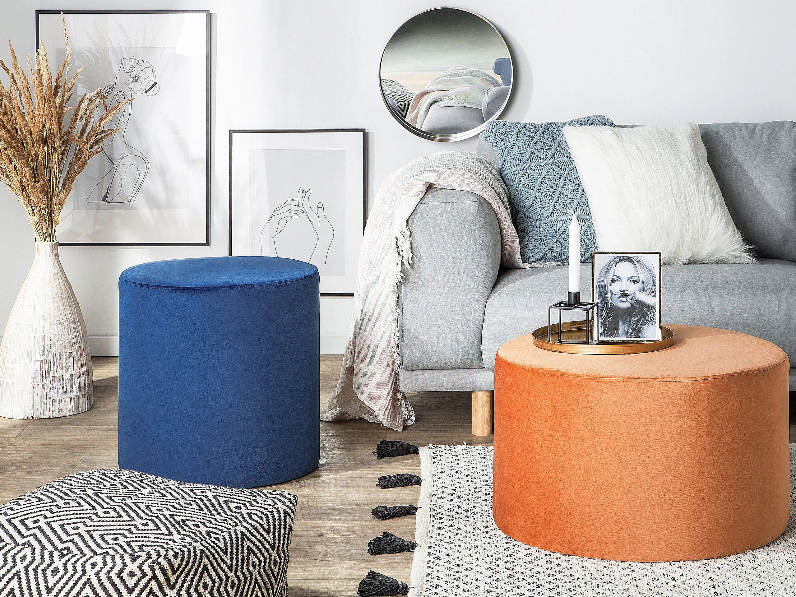 Pouf LOVETT Velours Bleu foncé