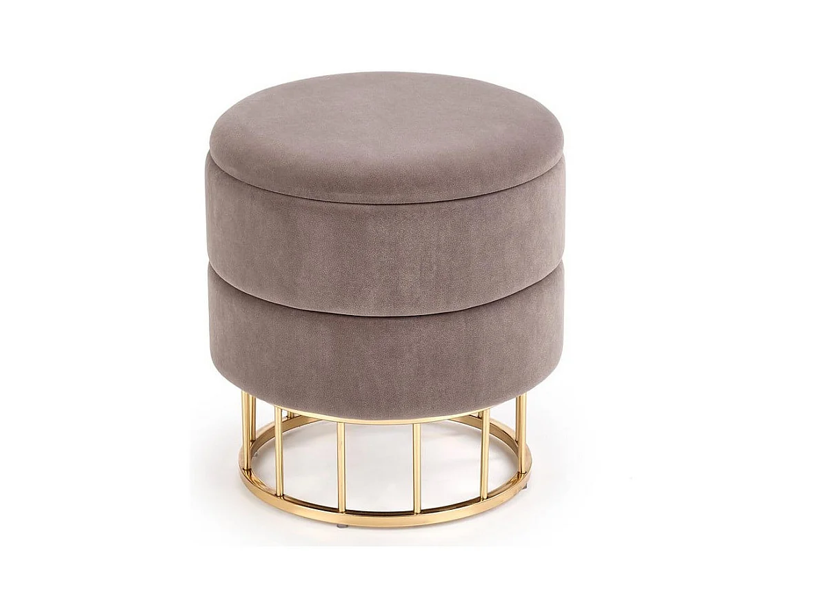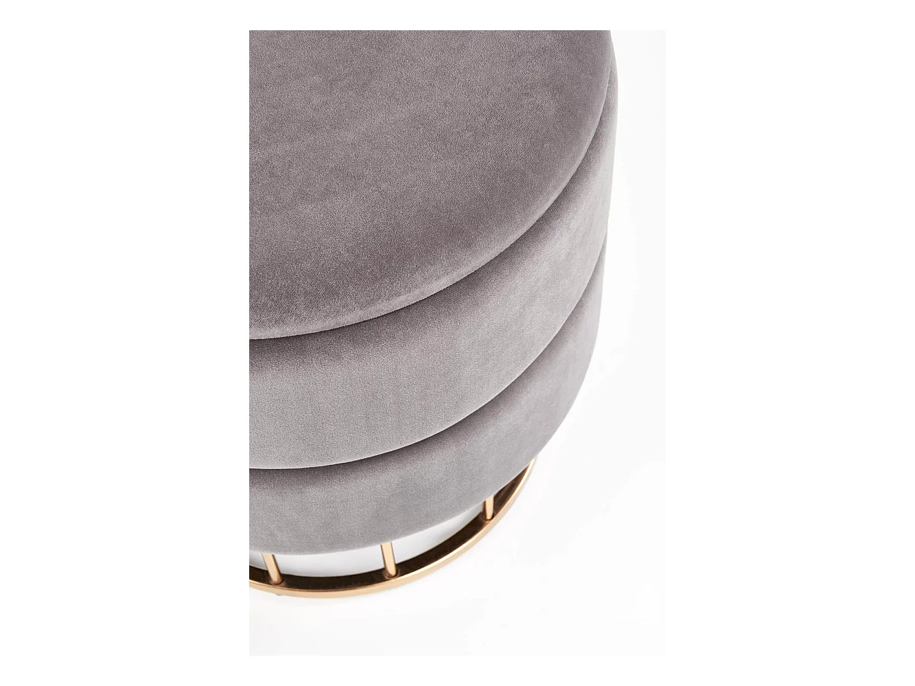 Pouf en velours gris avec coffre de rangement et base en métal doré CHEST