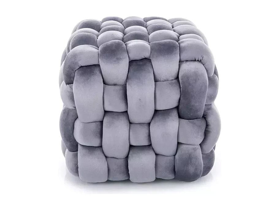 Pouf cube en velours gris à effet tressé, forme carrée et rembourrage doux ANIANKAZ