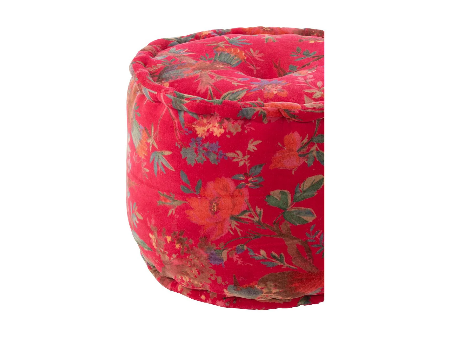 Pouf en Velours "Oiseaux Fleurs" 40cm Rose