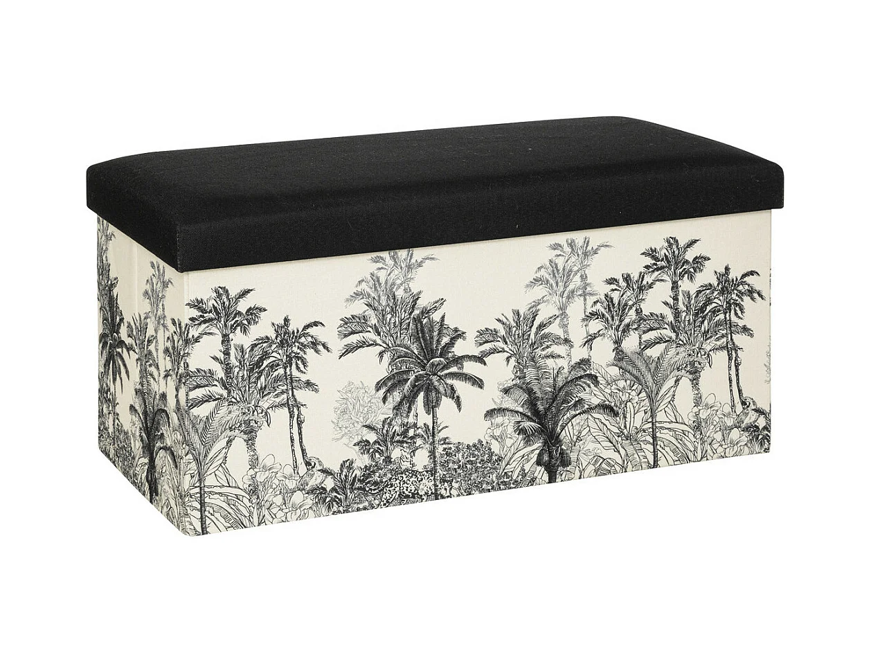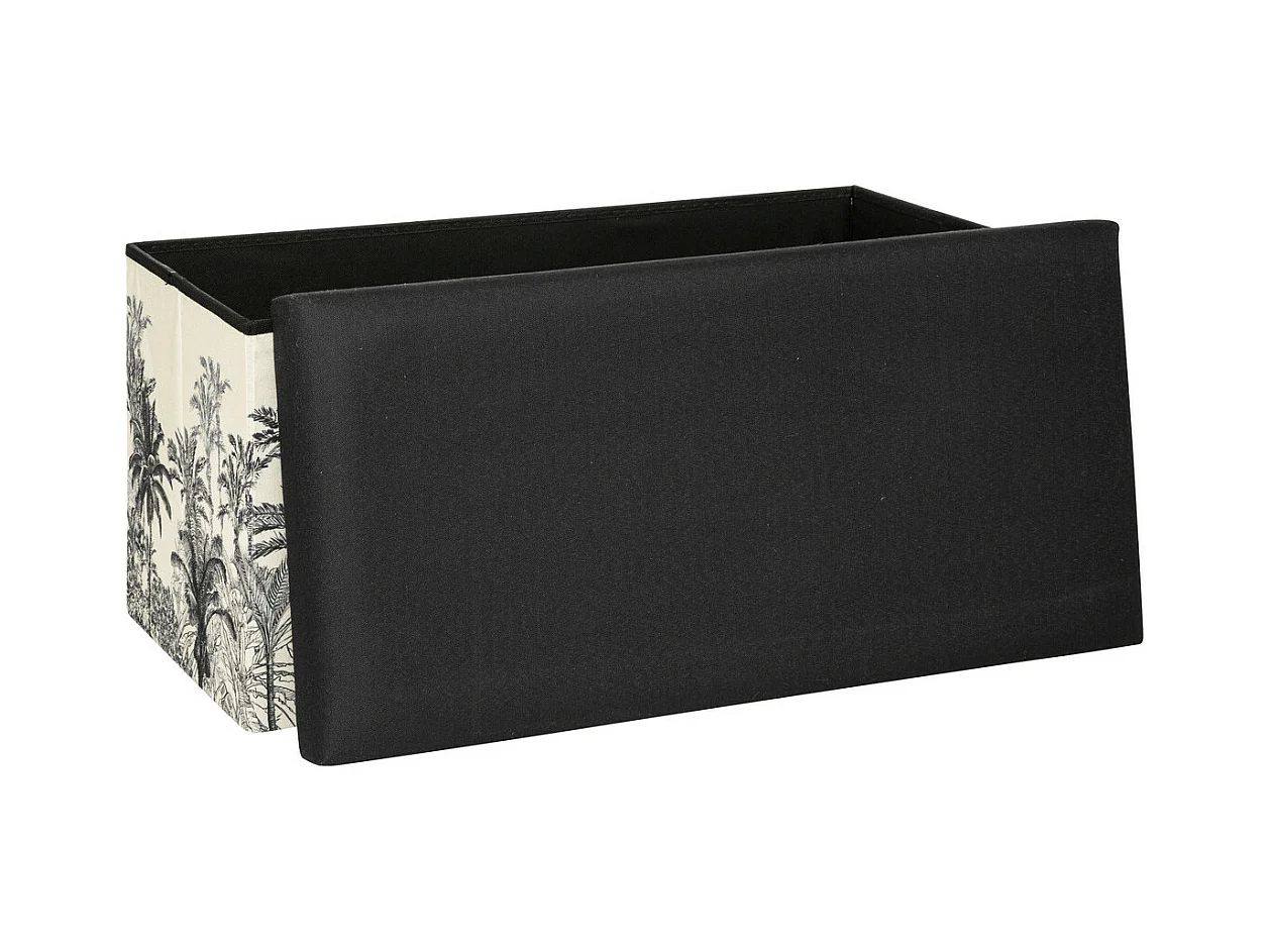 Pouf et Coffre de rangement en bois et tissu imprimé Noir & Blanc 76 x 38 cm