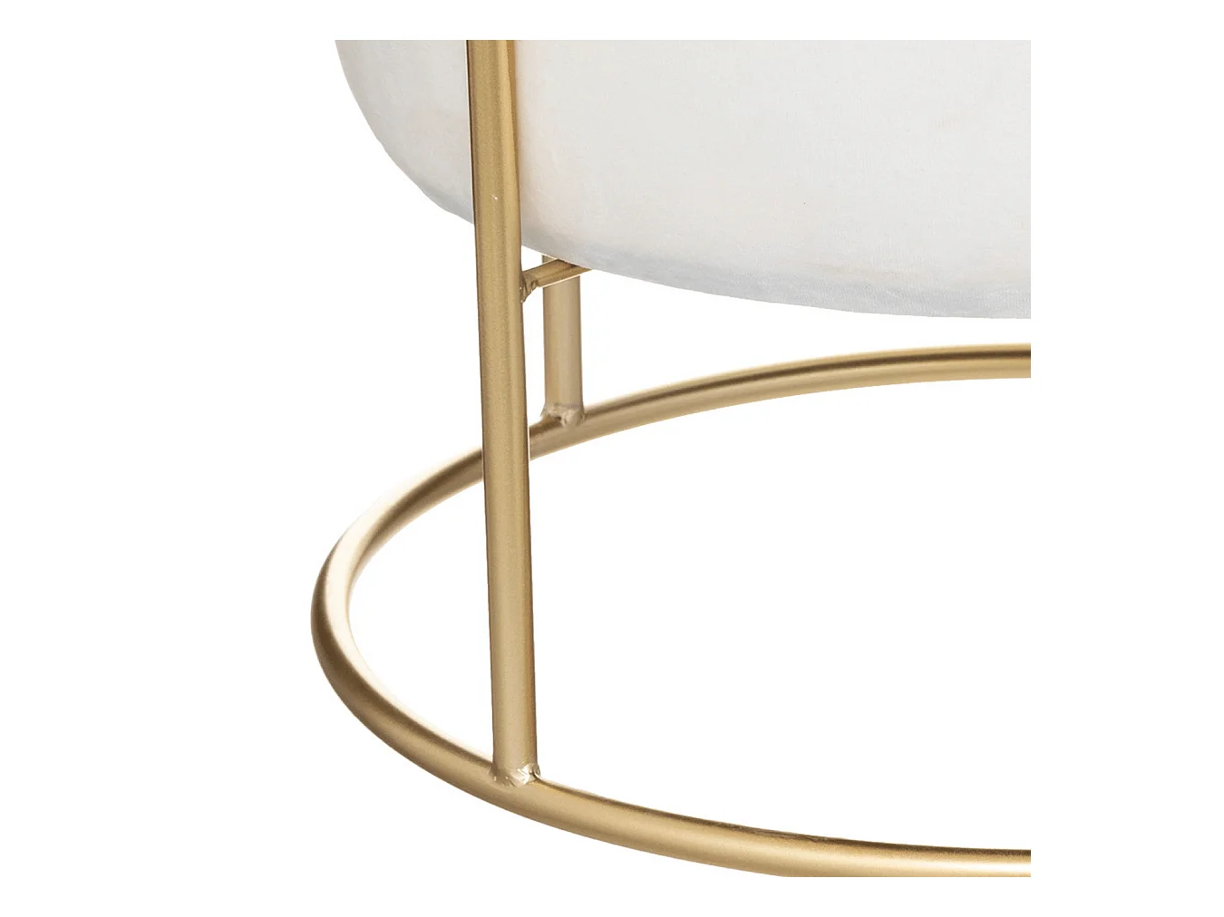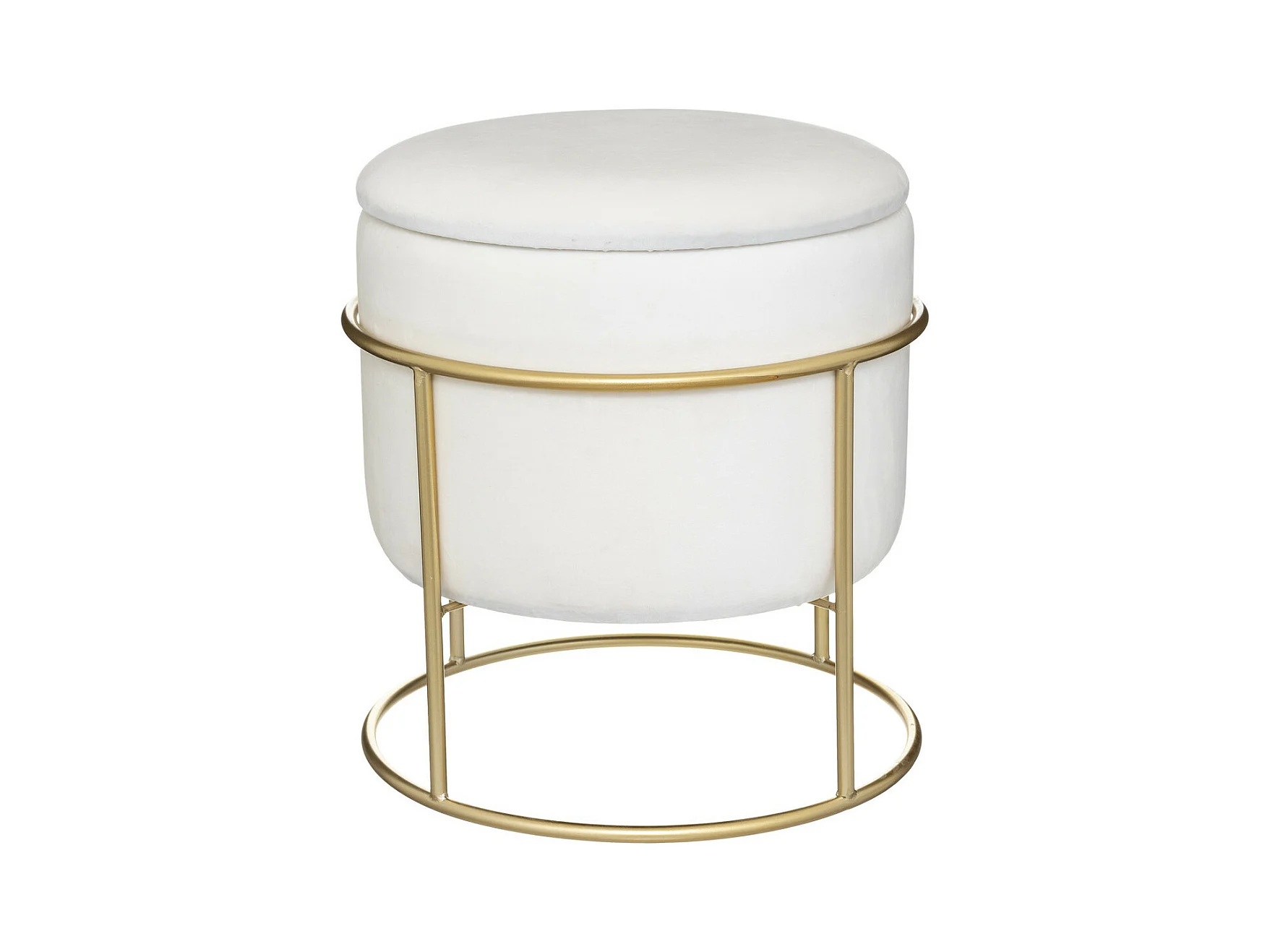 Pouf et Coffre de rangement en Velours Blanc Ivoire et support en métal D 42 x H 44 cm