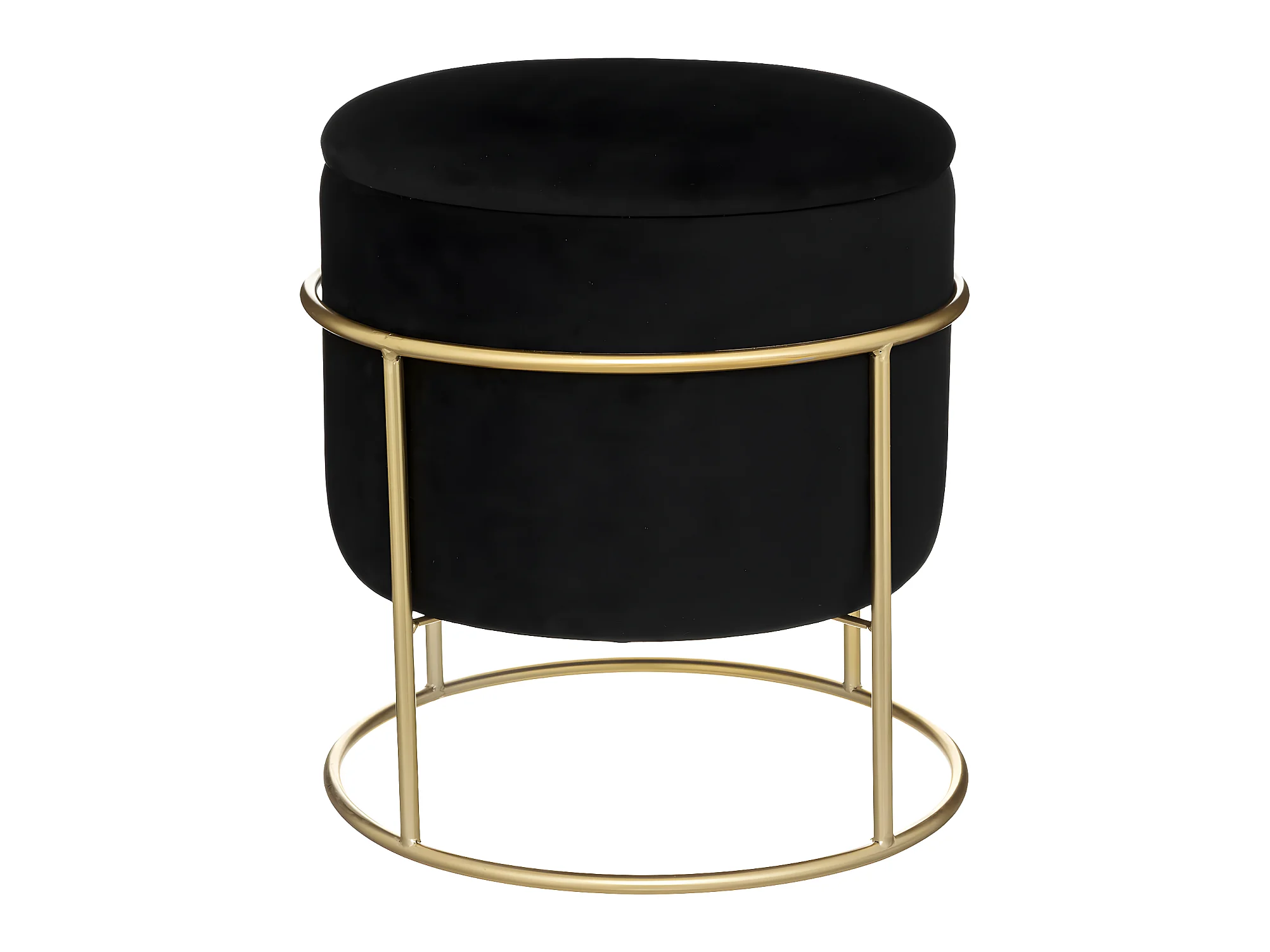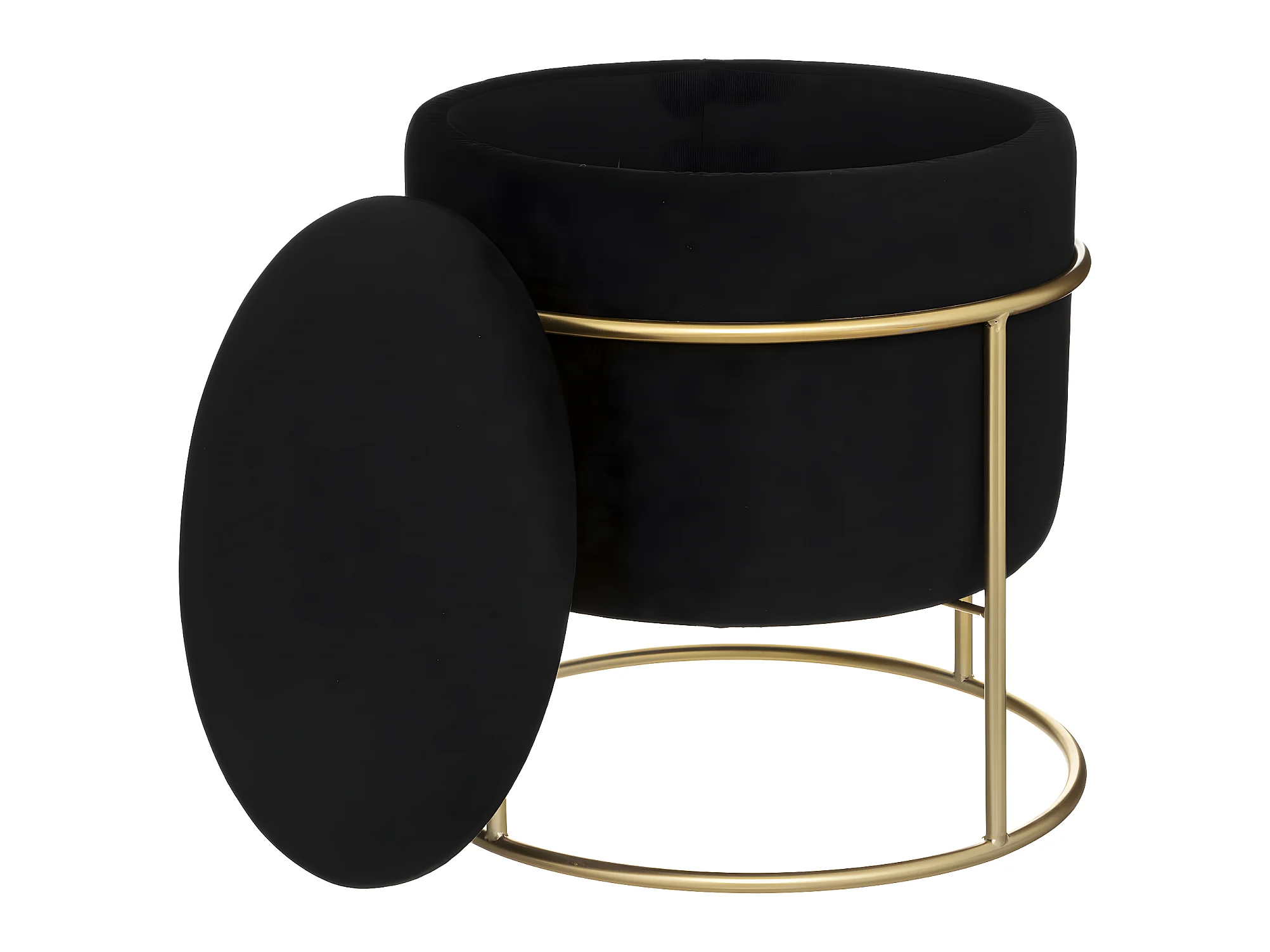 Pouf et Coffre de rangement en Velours Noir et support en métal D 42 x H 44 cm