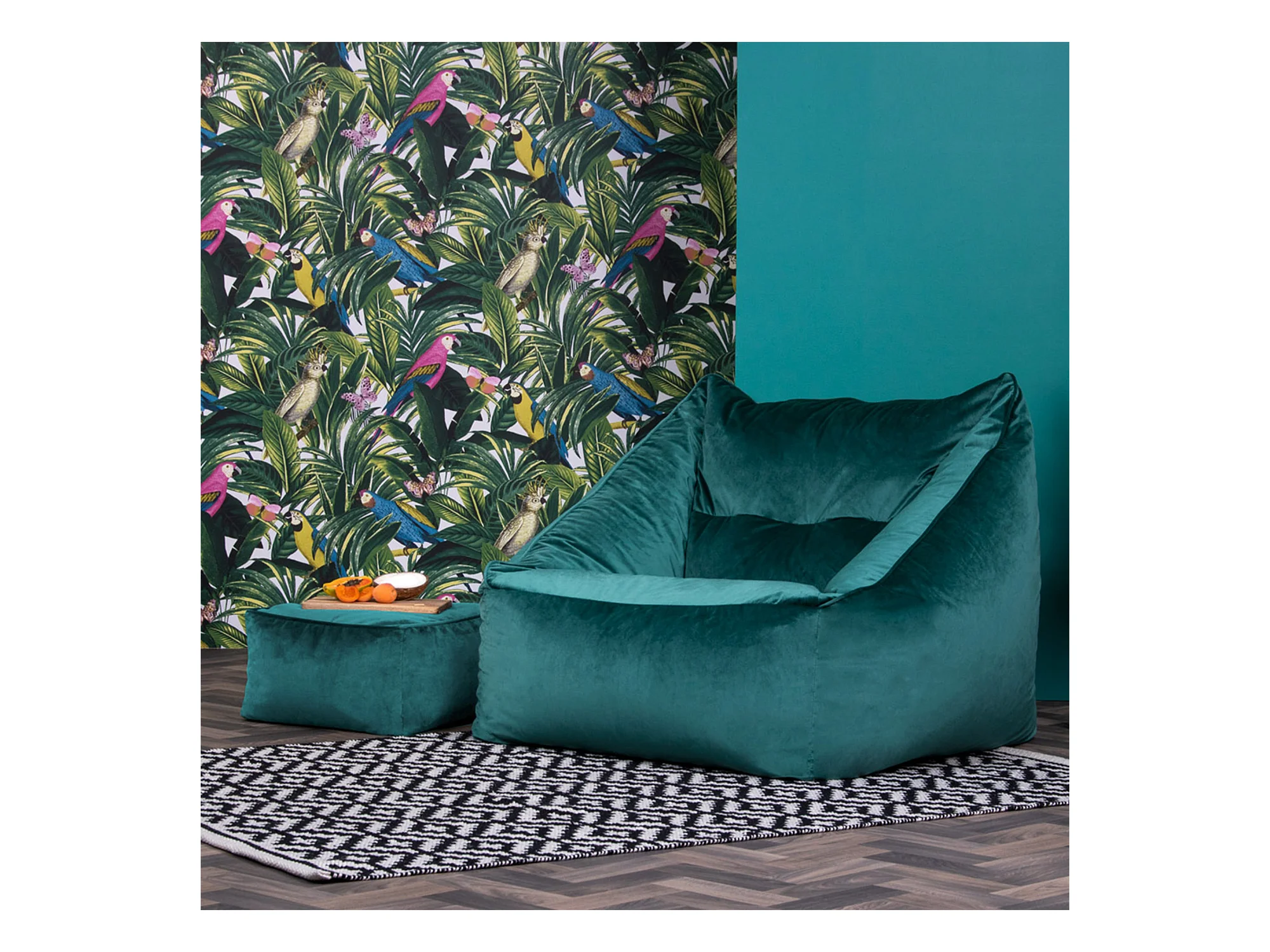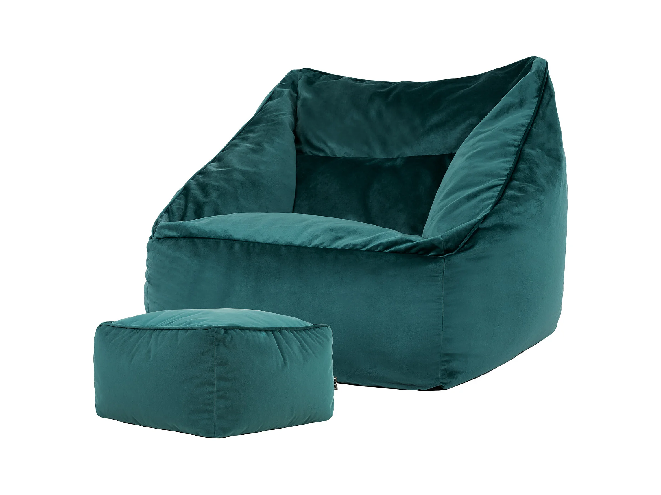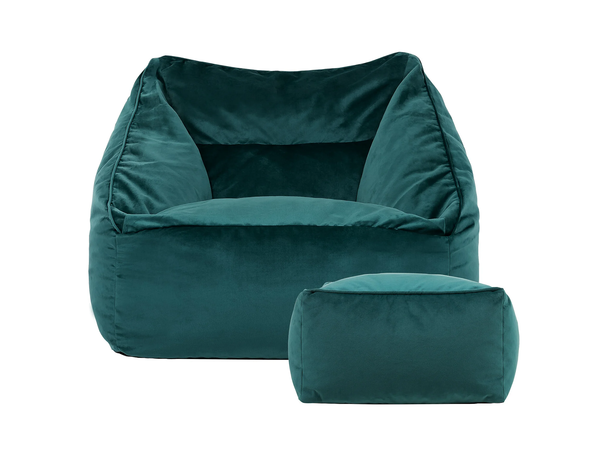 Pouf fauteuil avec repose-pied carré velours bleu canard - NATALIA