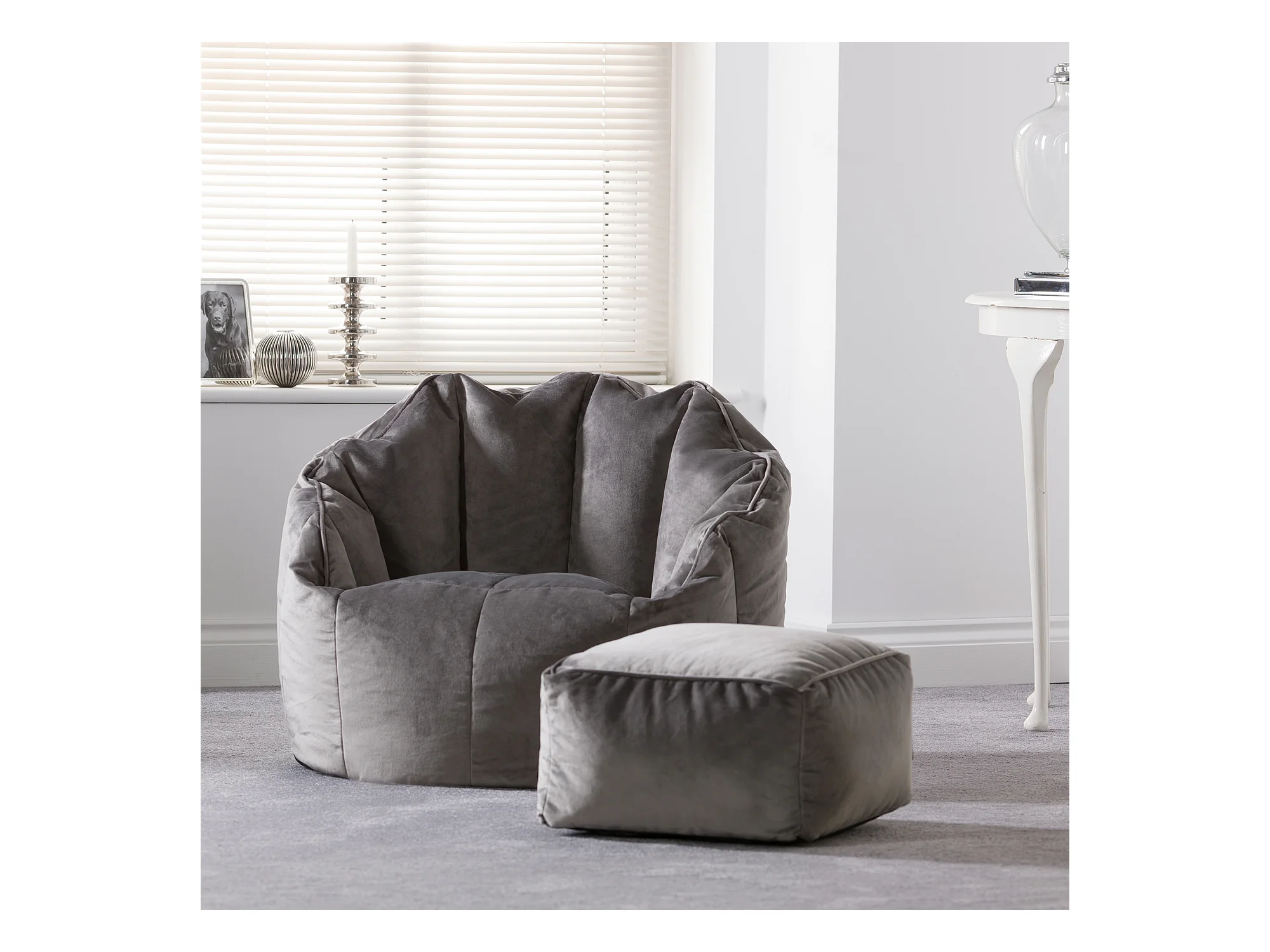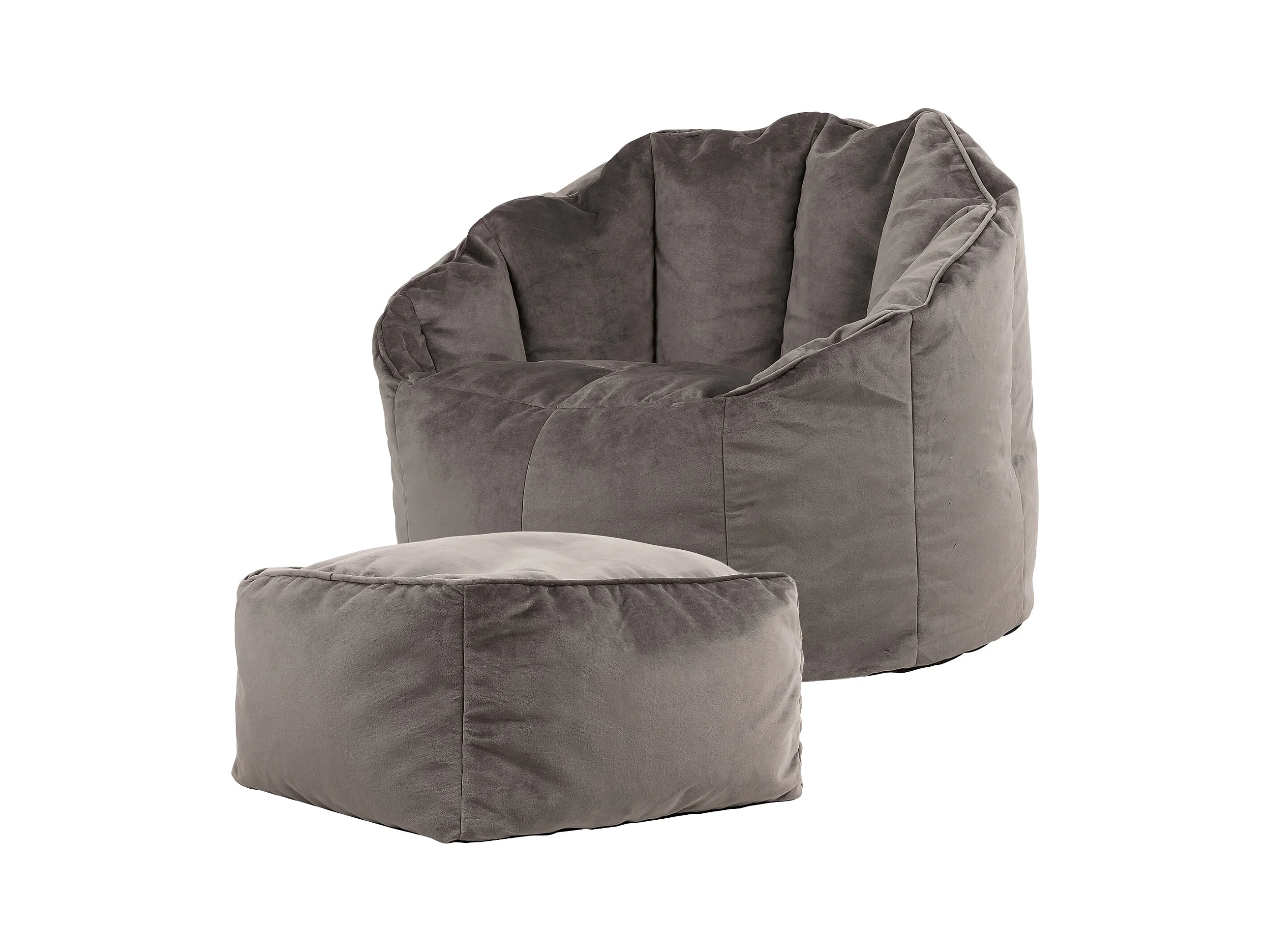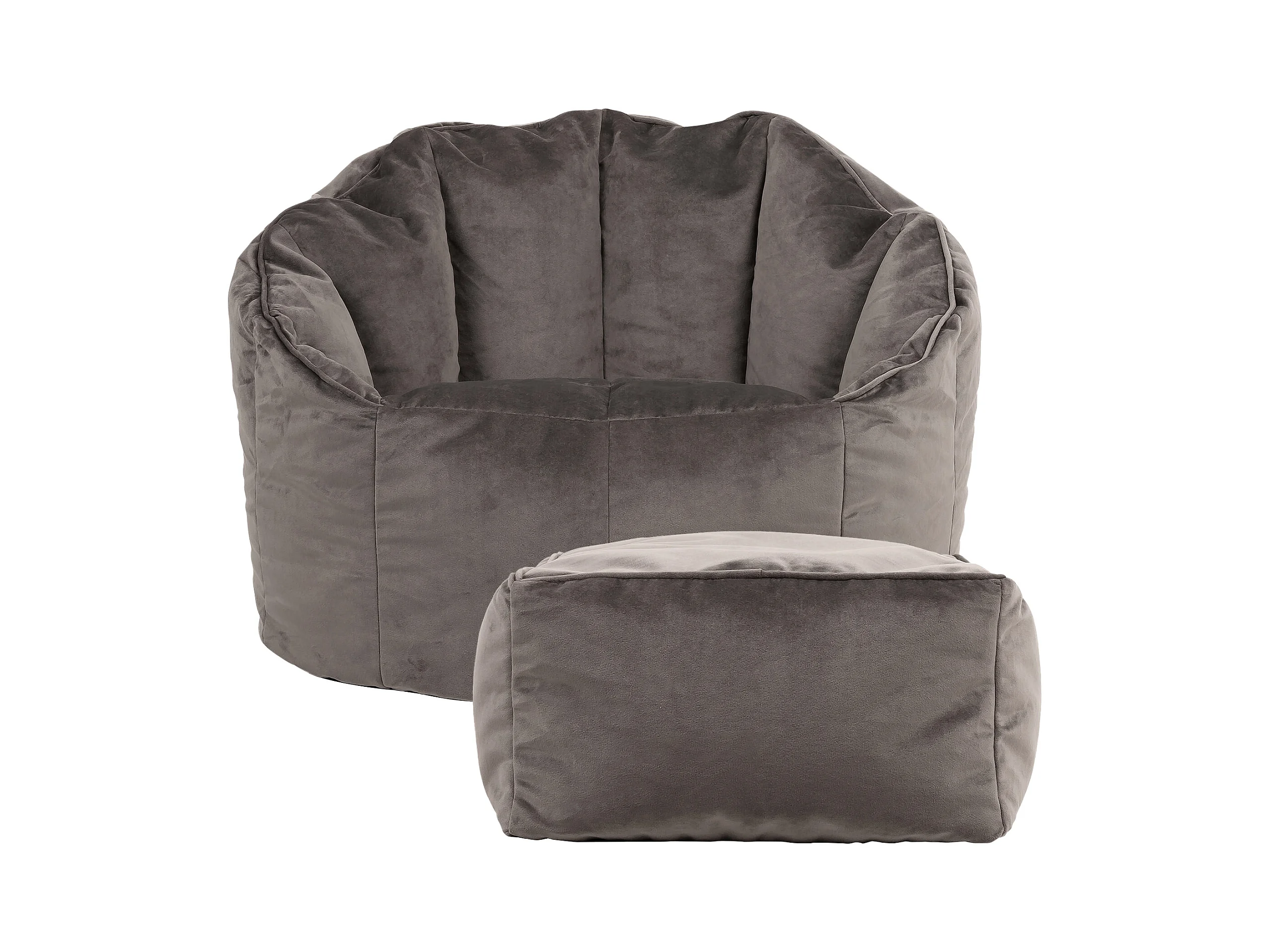 Pouf fauteuil avec repose-pied velours gris anthracite - SIRENA