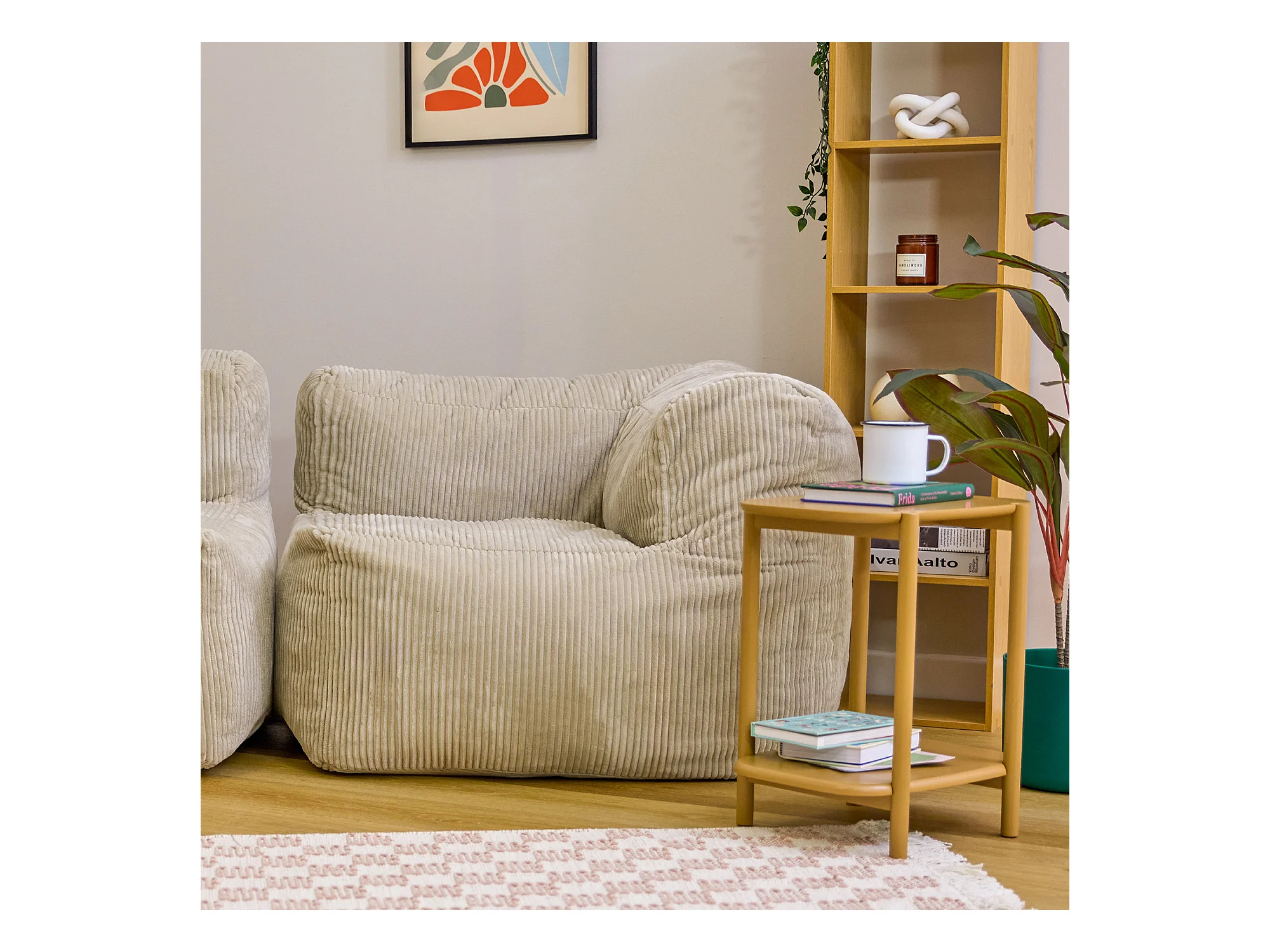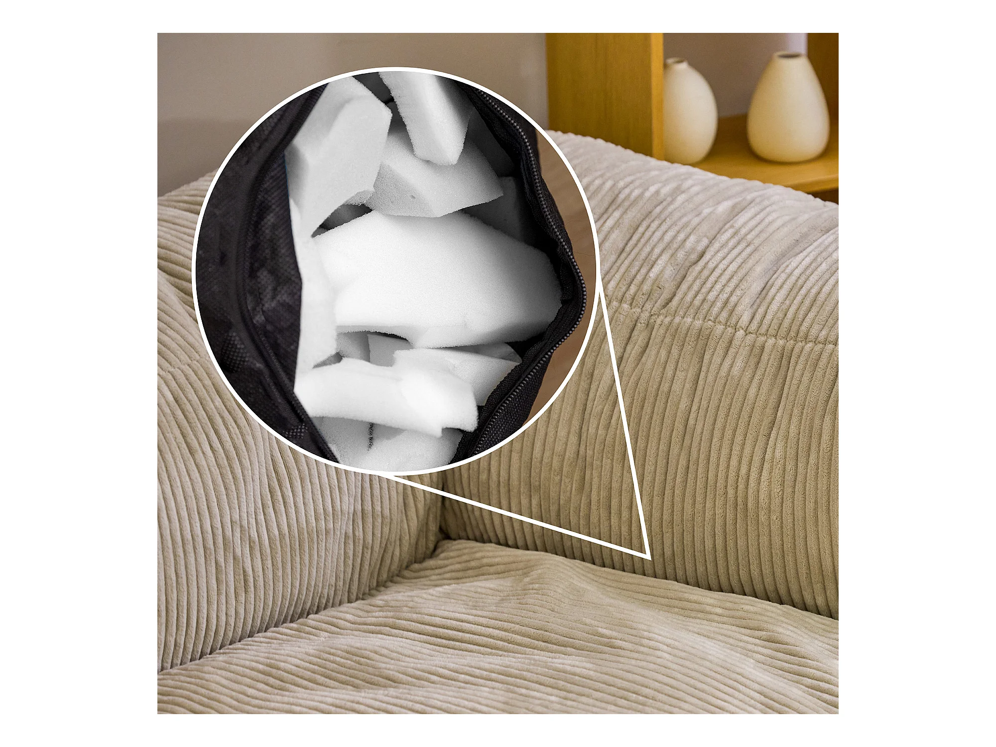 Pouf fauteuil d'angle modulaire en velours côtelé beige - ZEN