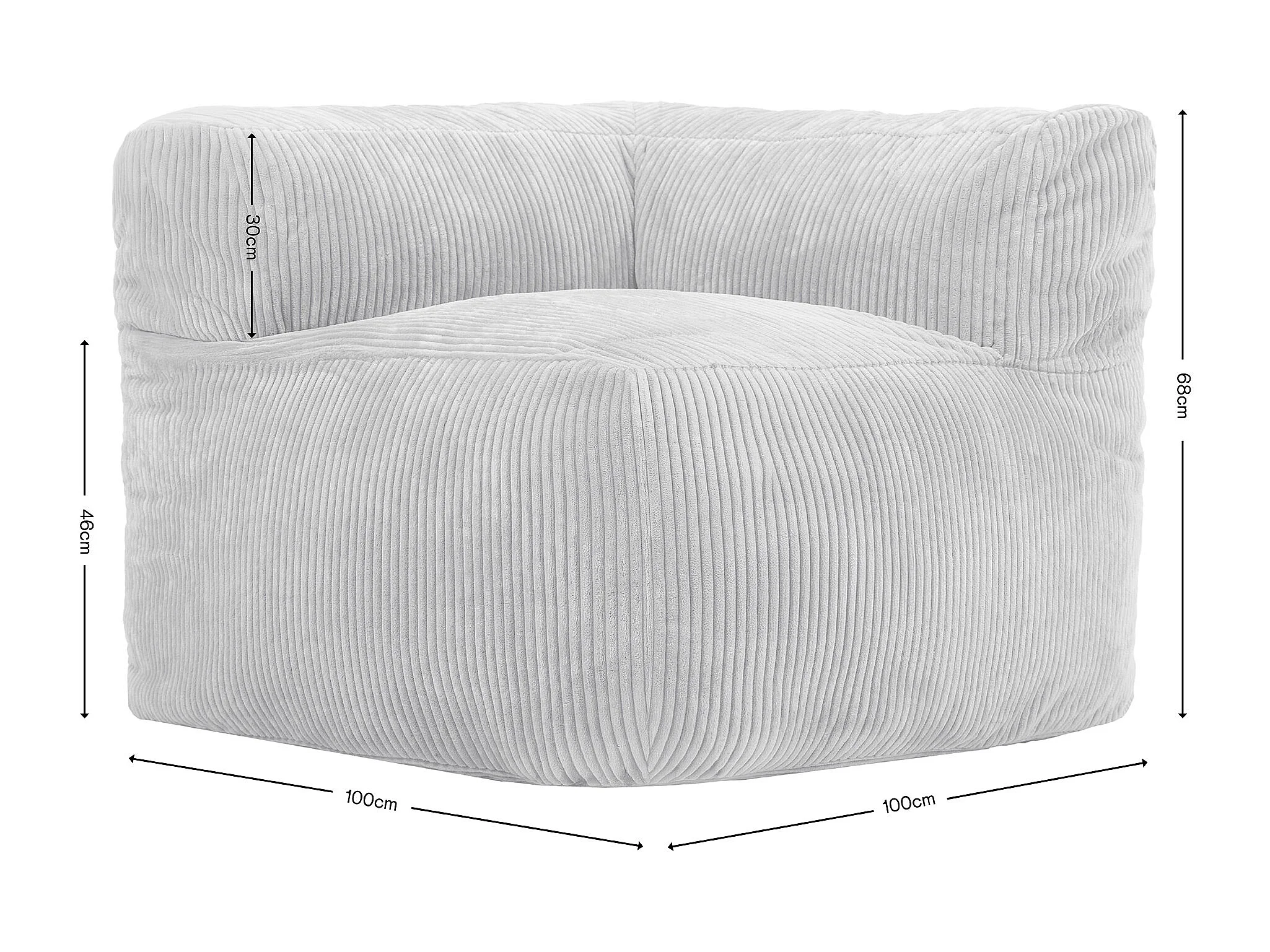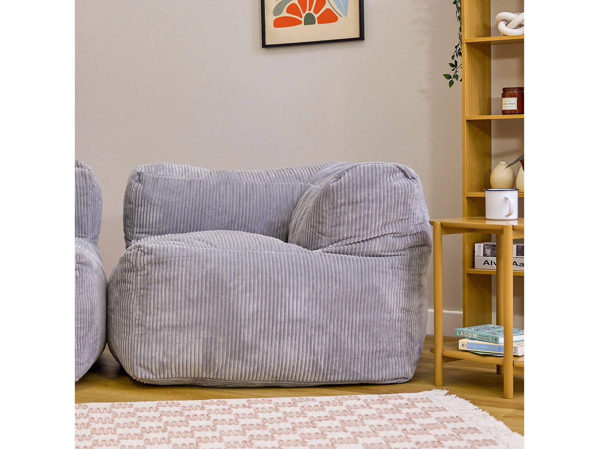 Pouf fauteuil d'angle modulaire en velours côtelé gris - ZEN