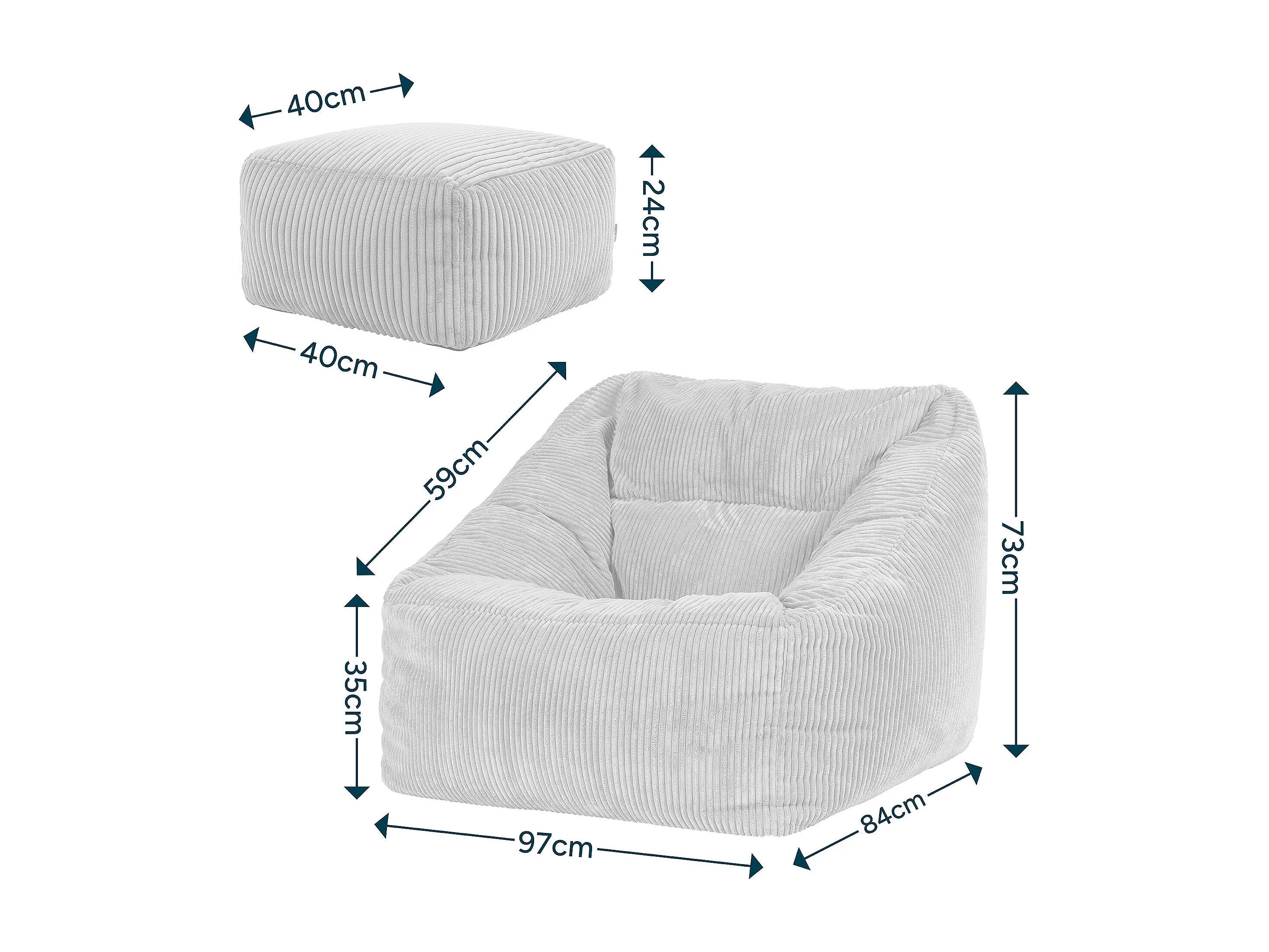 Pouf fauteuil et son repose-pieds carré velours côtelé gris, salon ou chambre - NATALIA