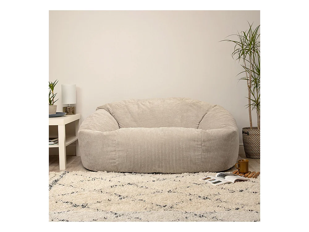 Pouf géant canapé velours côtelé beige galet - SOUL
