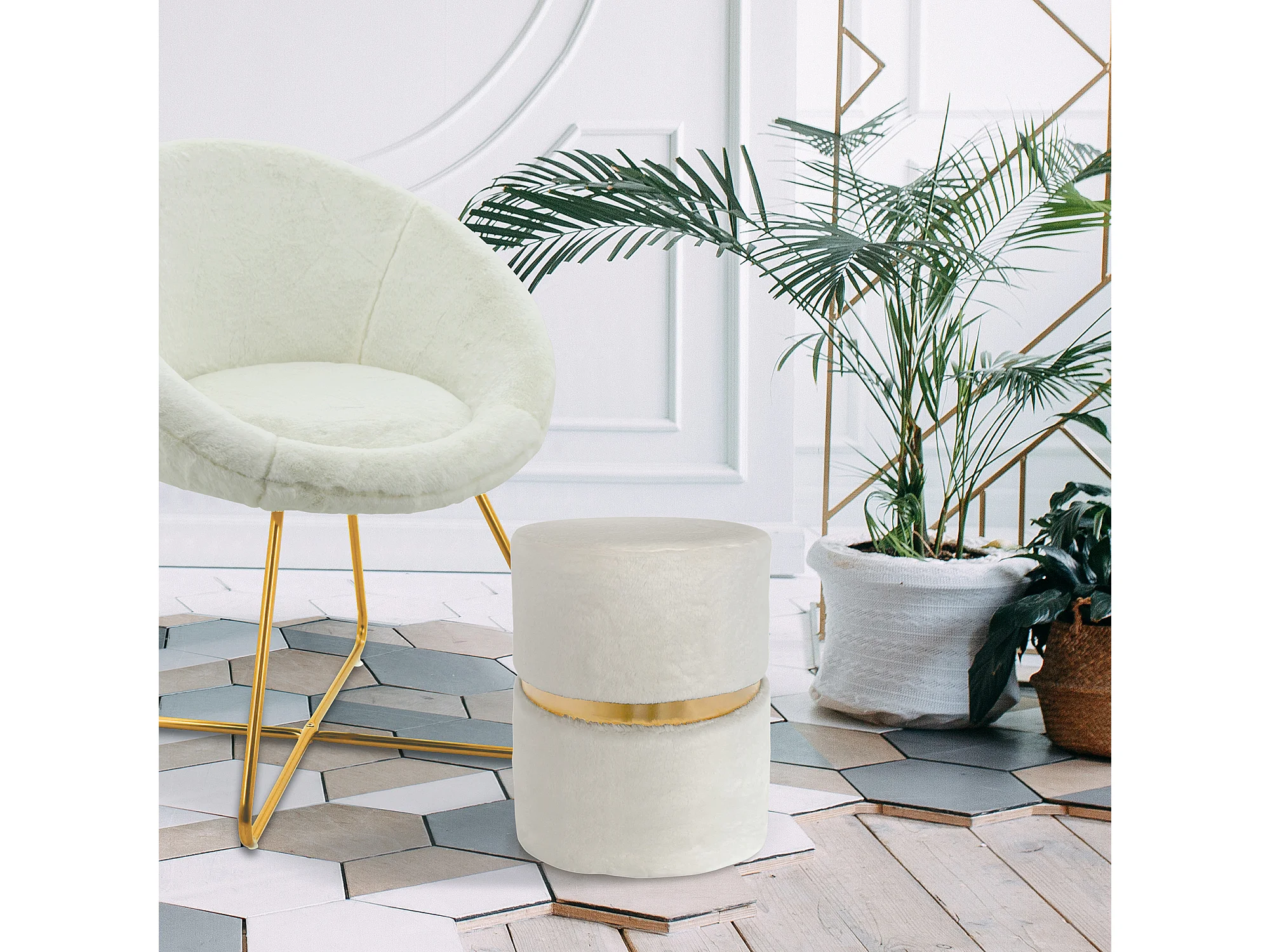 Fauteuil cabriolet et pouf en tissu bouclette blanc JOVANA