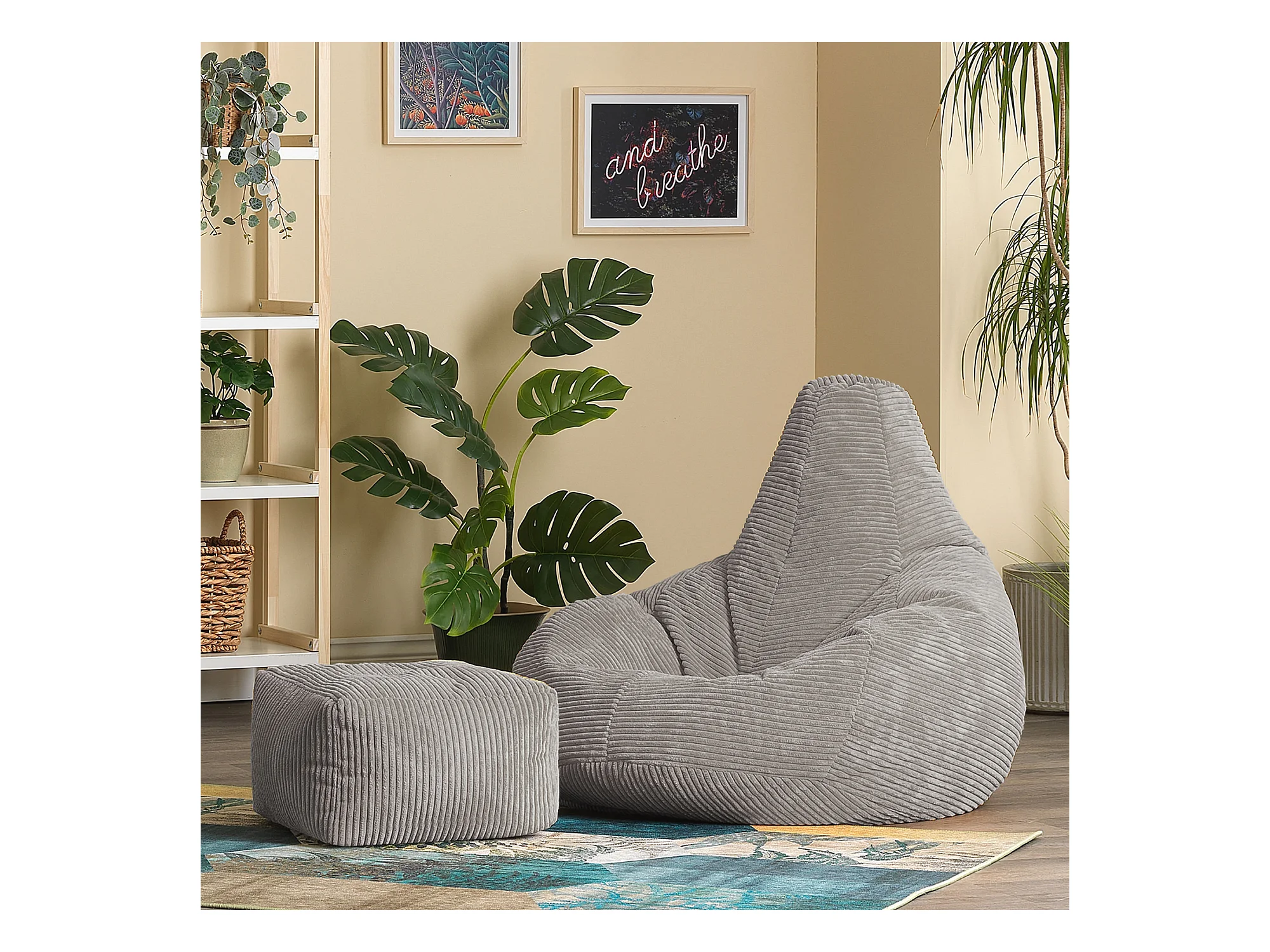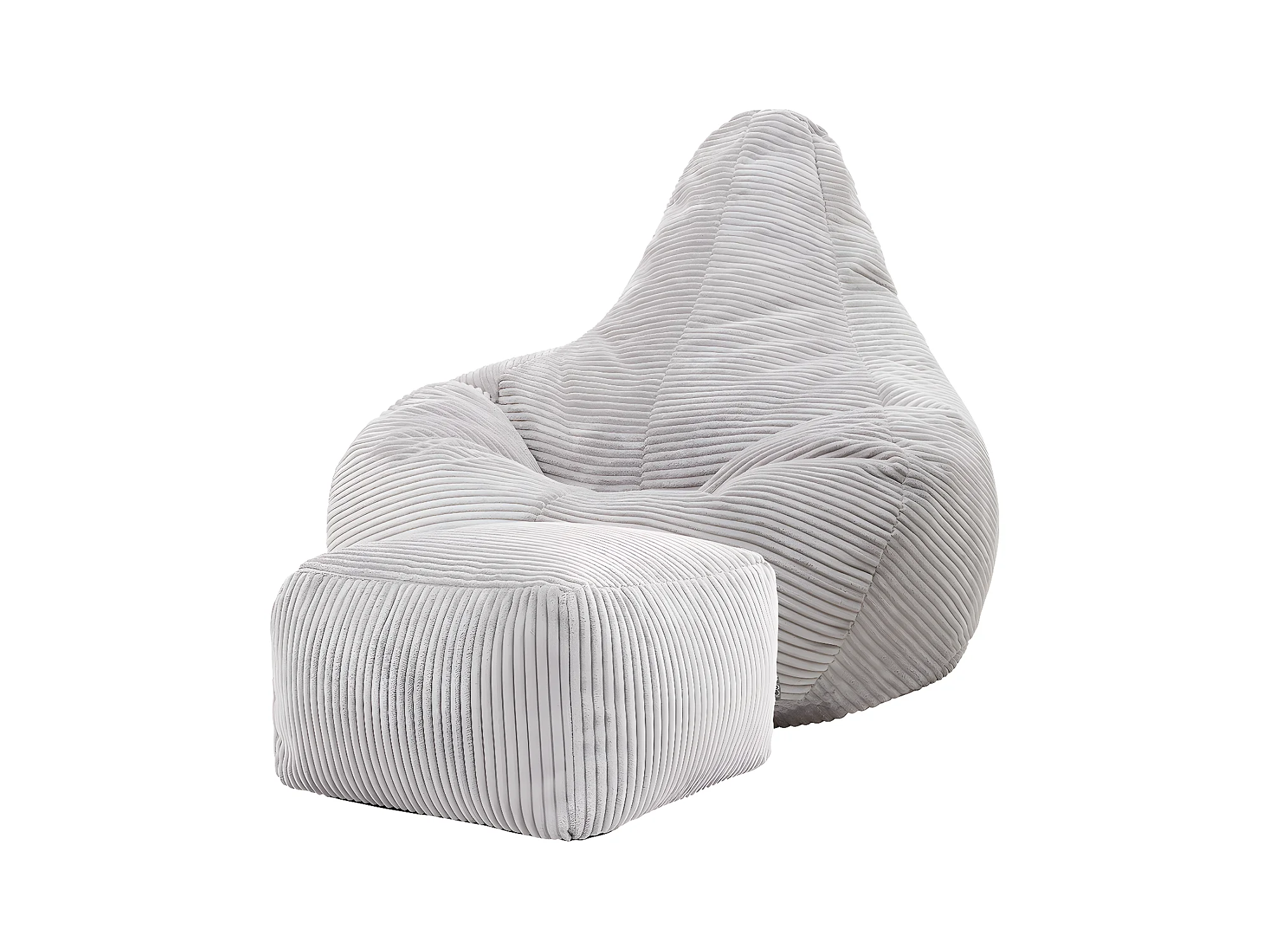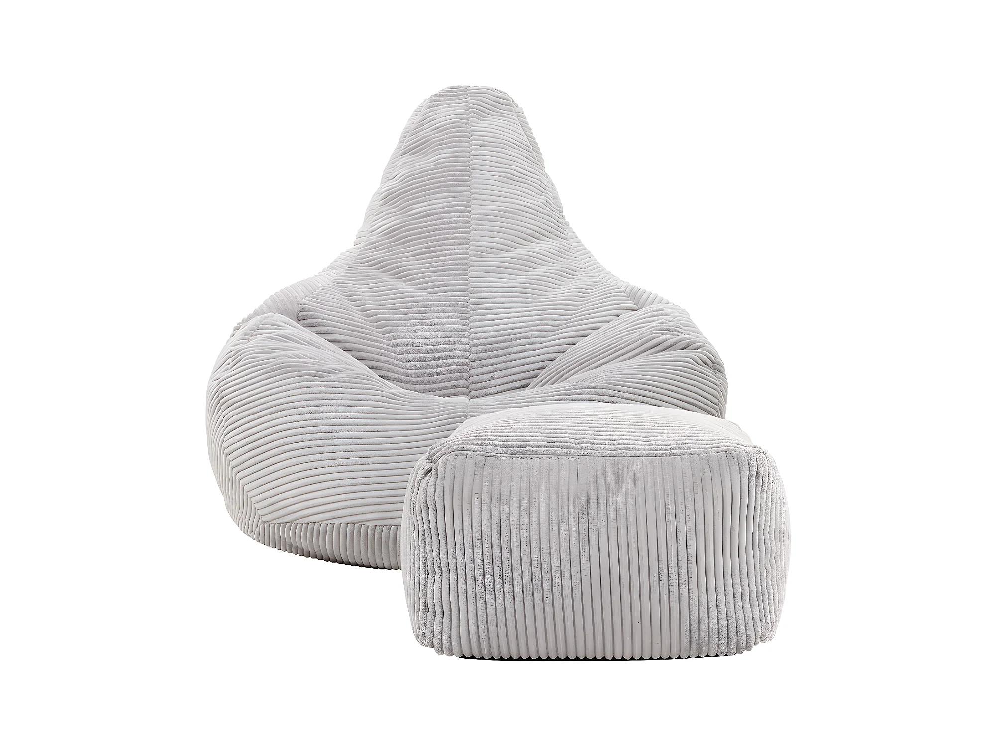 Pouf inclinable et son repose-pied velours côtelé, gris - DALTON