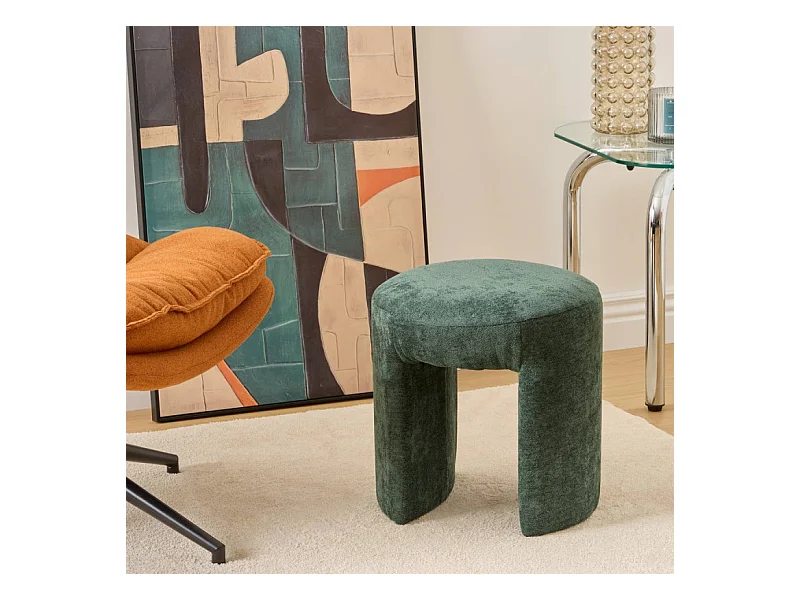 Pouf Design en Tissu "Jin" 38cm Vert Cèdre