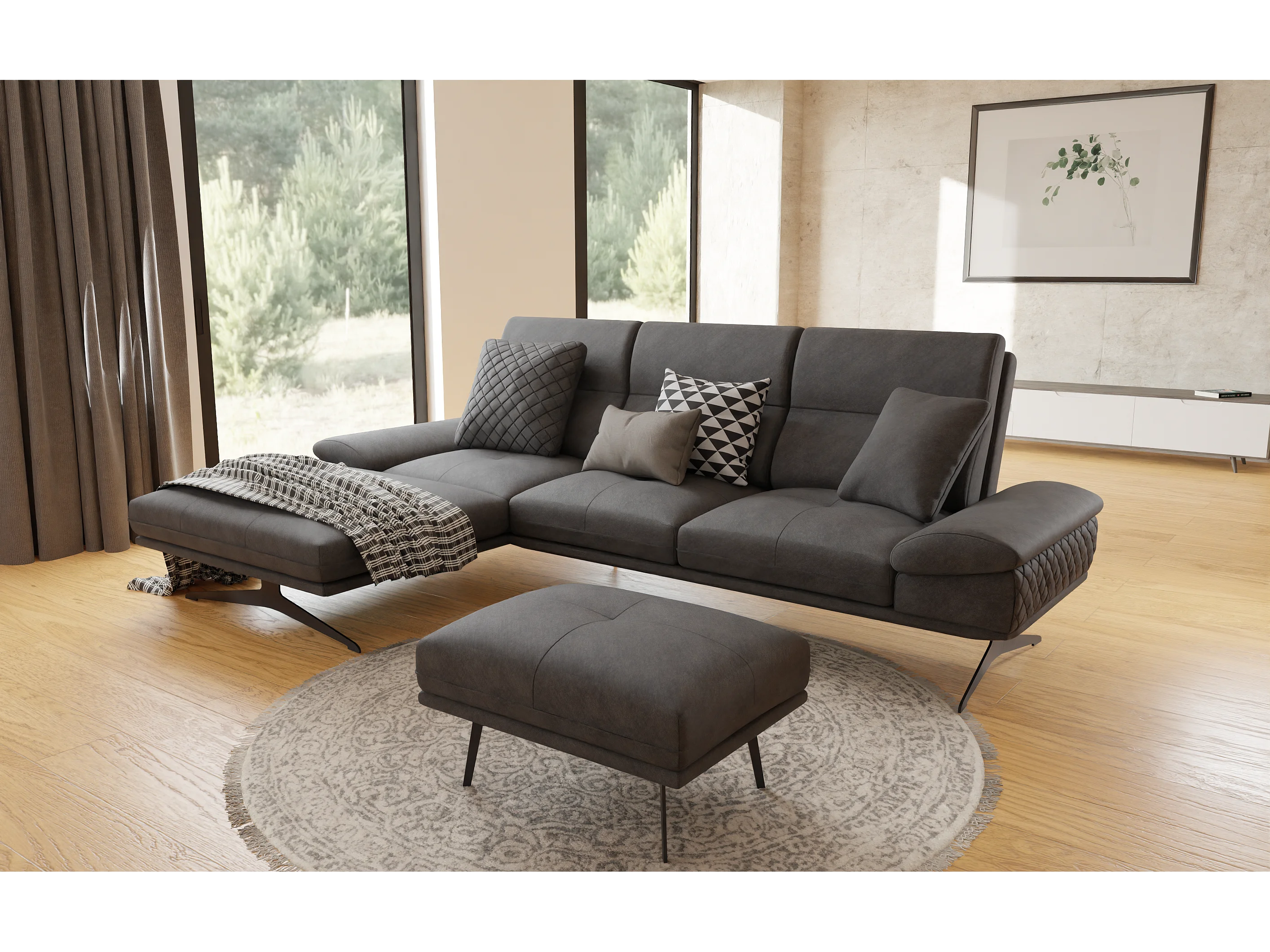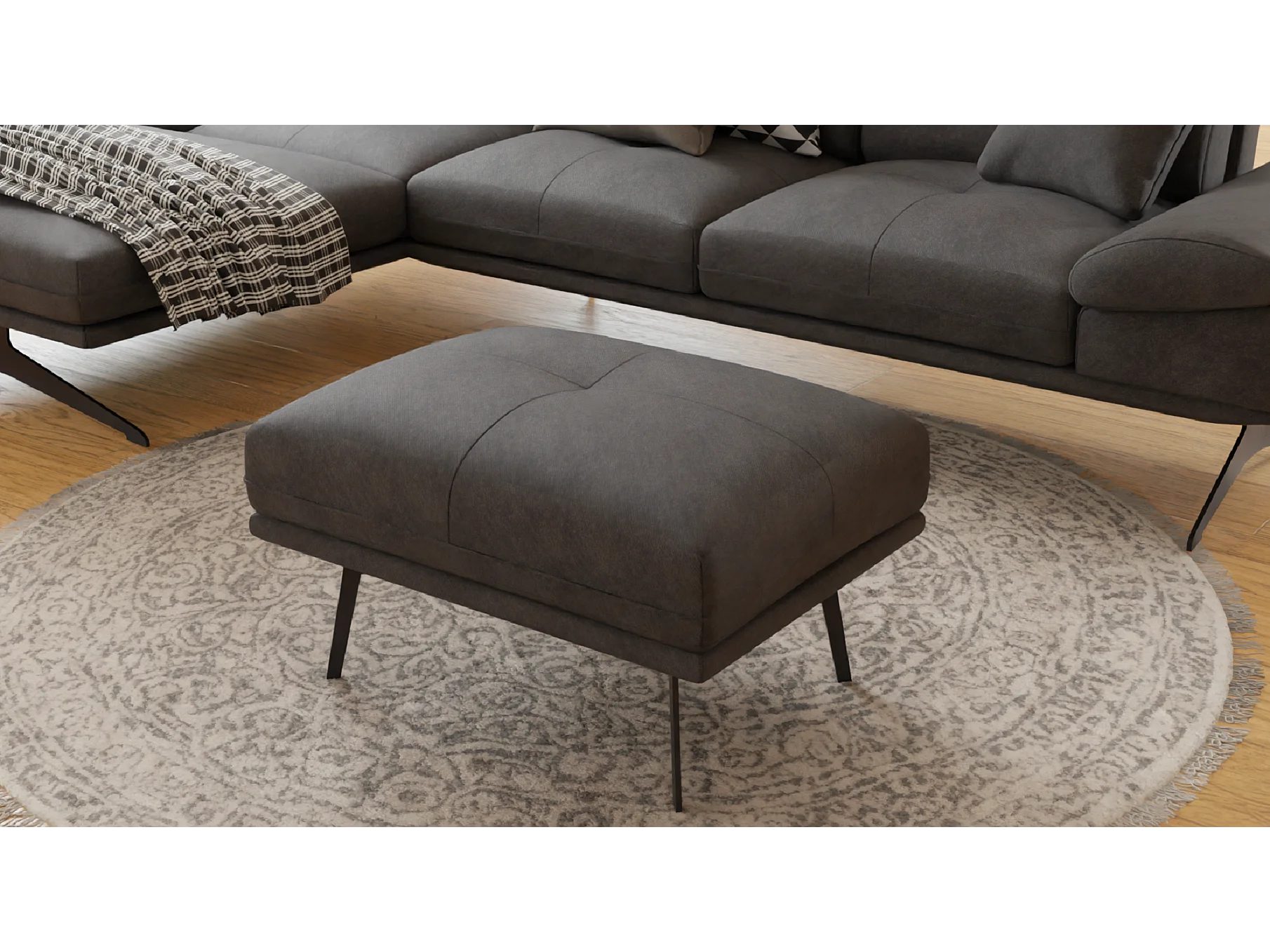 Pouf moderne avec hauts pieds en métal noir, en tissu velours noir Haga